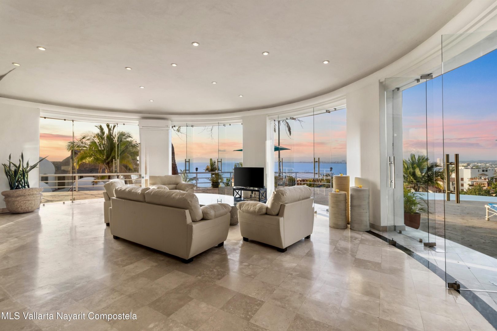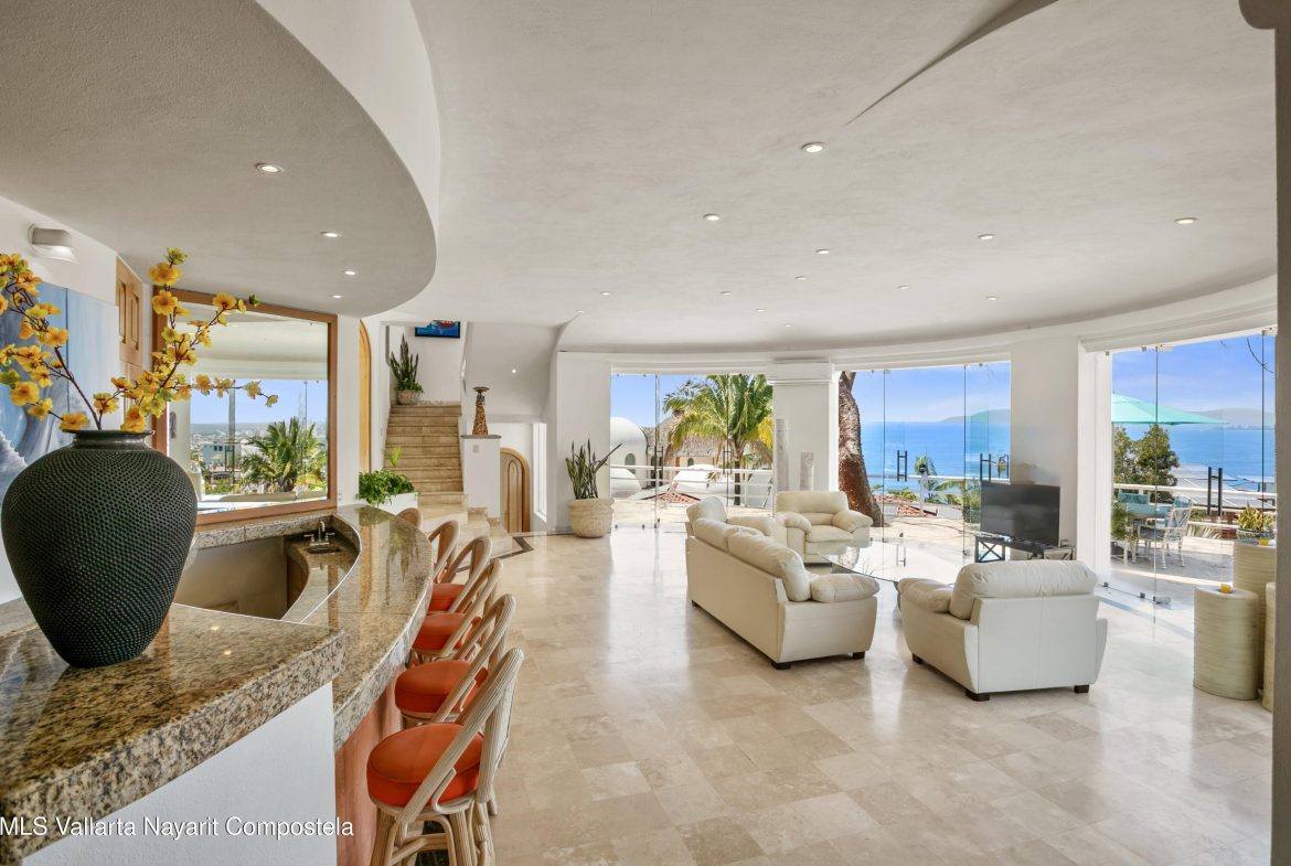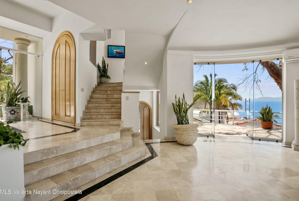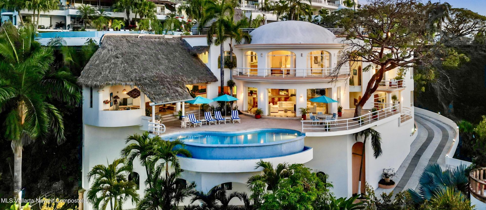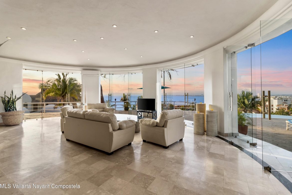 Perched above Puerto Vallarta’s vibrant Romantic Zone in the sought-after Amapas neighborhood, Villa Francisco immediately captivates with its breathtaking panoramic views. Set within a prestigious gated enclave just minutes from Old Town, this three-level luxury villa is nestled among lush tropical gardens and the dramatic Sierra Madre mountains, offering unobstructed vistas of downtown Puerto Vallarta, the Pacific Ocean, and the expansive Banderas Bay. Spanning over 7,000 square feet, this custom-built estate is rich in architectural detail–highlighted by sweeping curved glass doors that open seamlessly to the stunning scenery beyond.