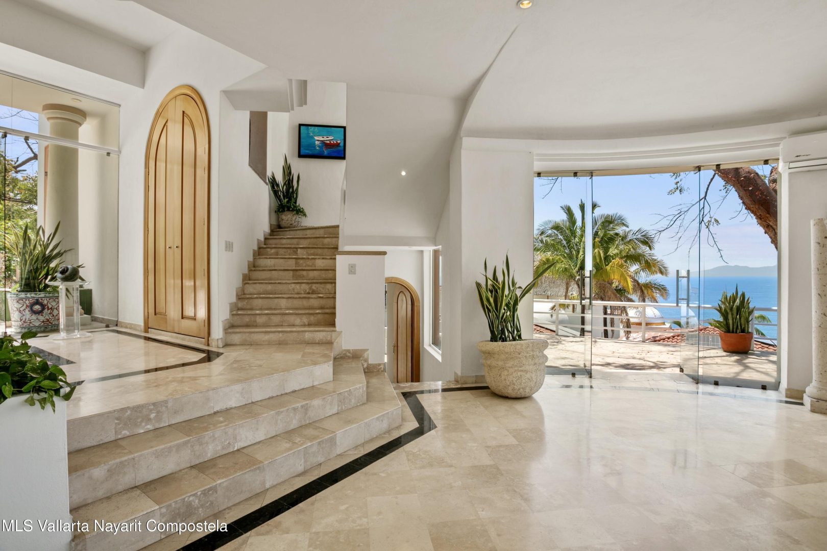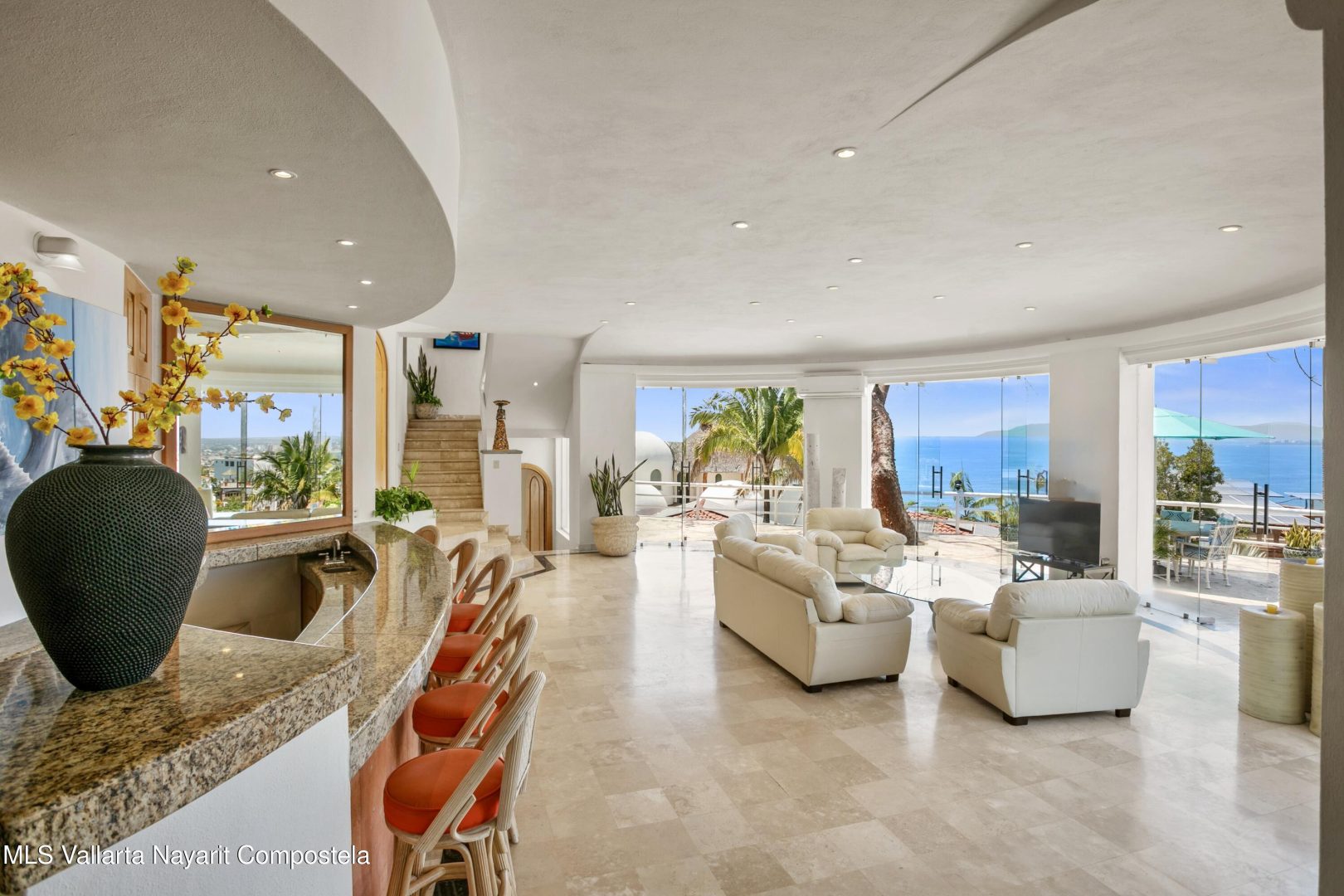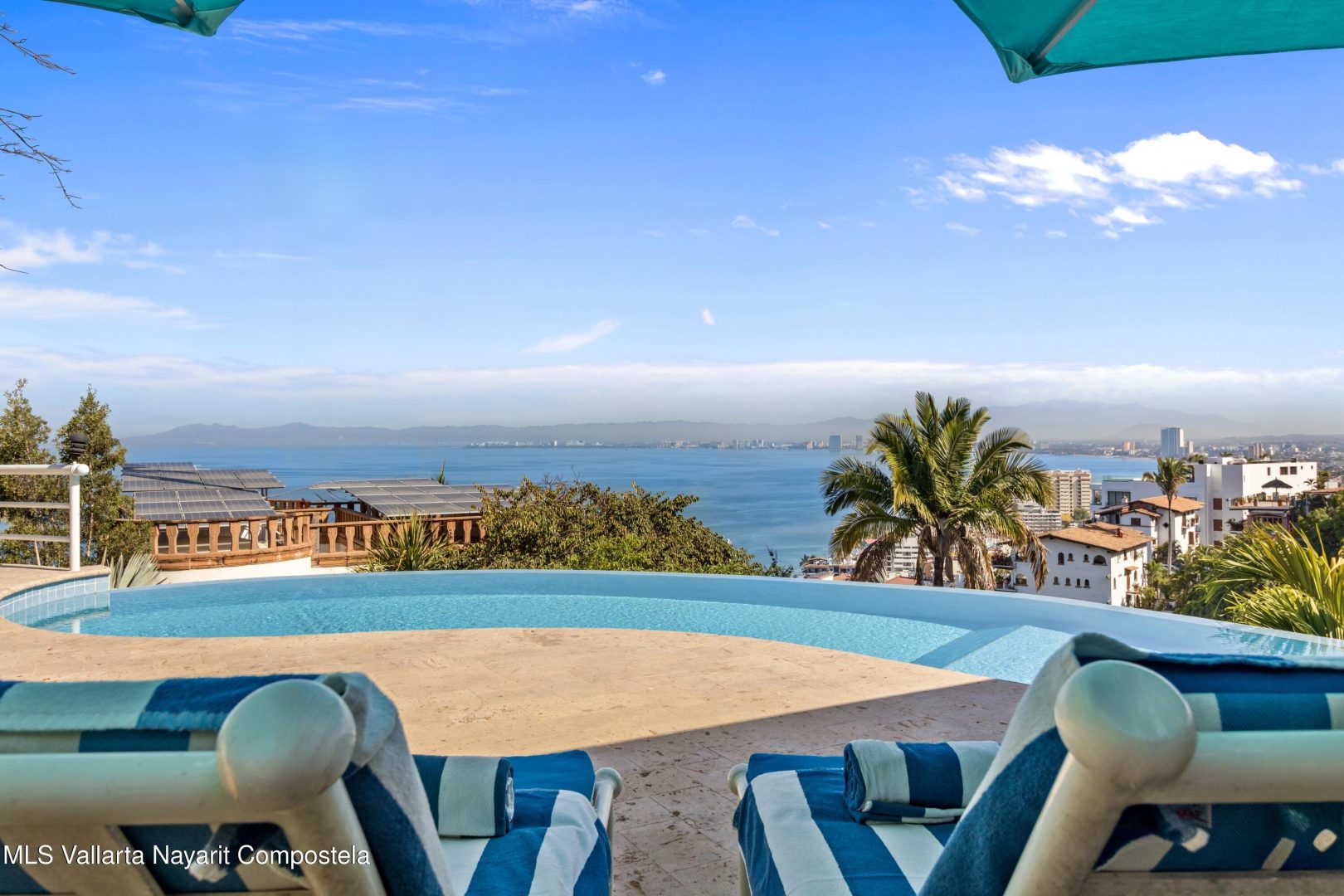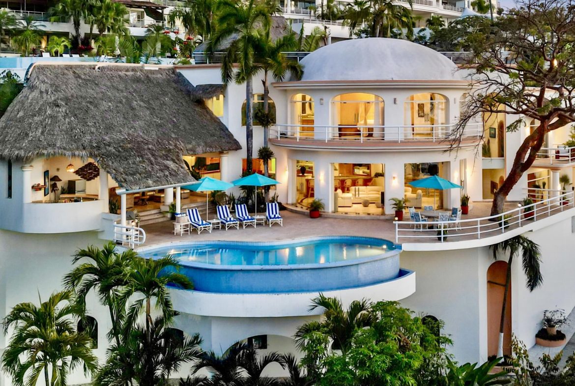 Perched above Puerto Vallarta’s vibrant Romantic Zone in the sought-after Amapas neighborhood, Villa Francisco immediately captivates with its breathtaking panoramic views. Set within a prestigious gated enclave just minutes from Old Town, this three-level luxury villa is nestled among lush tropical gardens and the dramatic Sierra Madre mountains, offering unobstructed vistas of downtown Puerto Vallarta, the Pacific Ocean, and the expansive Banderas Bay. Spanning over 7,000 square feet, this custom-built estate is rich in architectural detail–highlighted by sweeping curved glass doors that open seamlessly to the stunning scenery beyond.