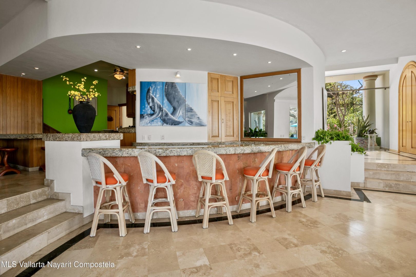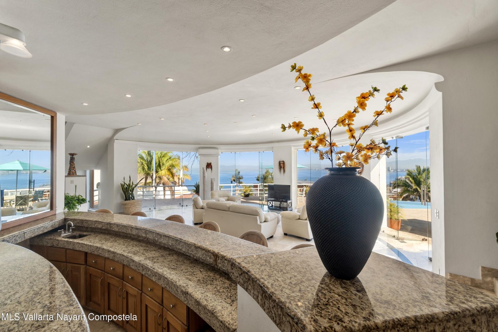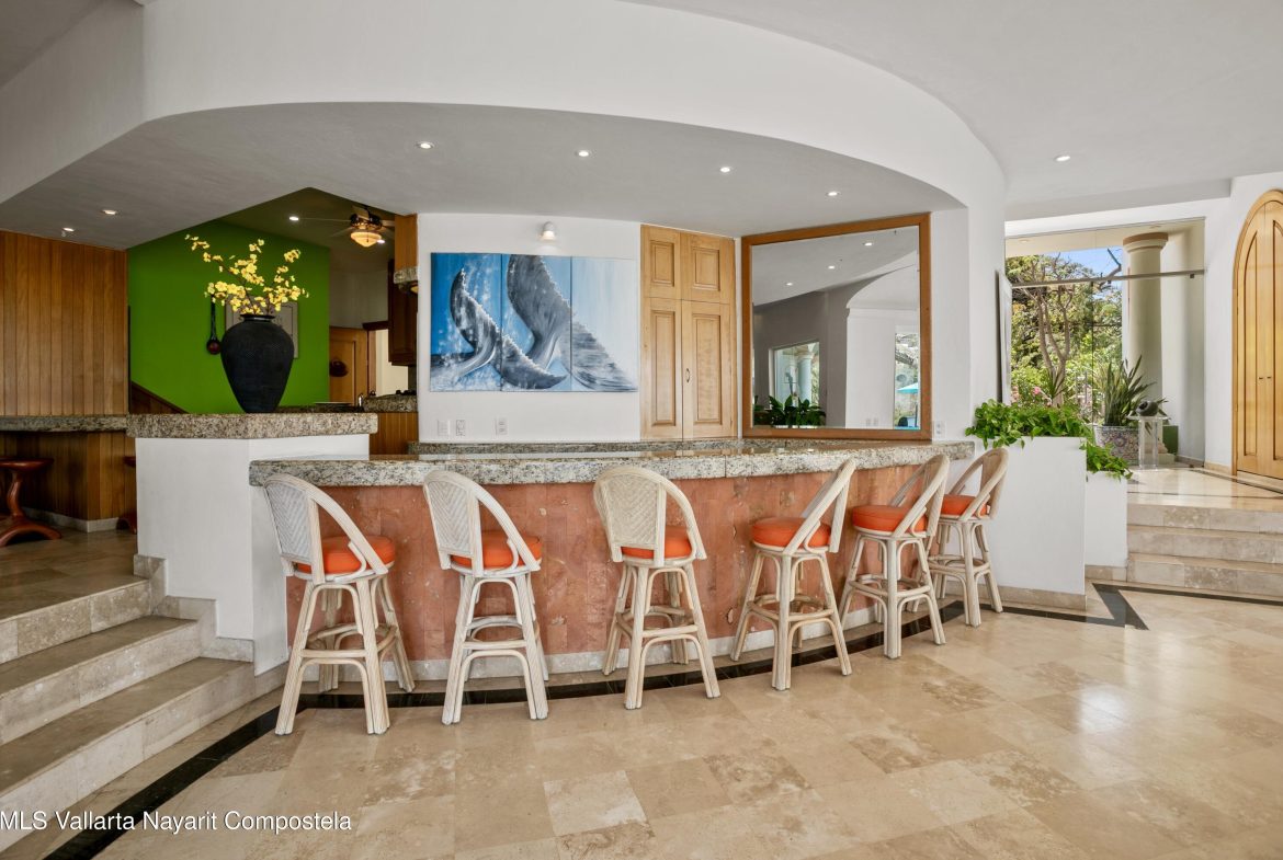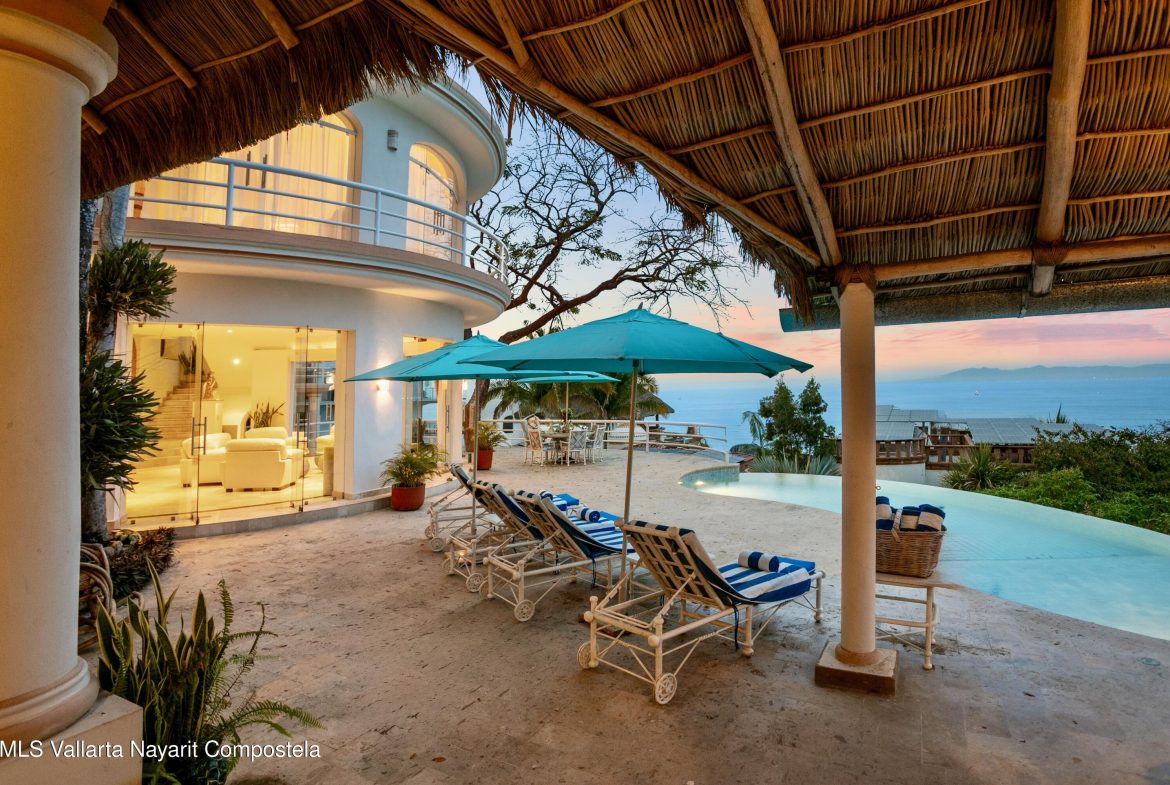 Perched above Puerto Vallarta’s vibrant Romantic Zone in the sought-after Amapas neighborhood, Villa Francisco immediately captivates with its breathtaking panoramic views. Set within a prestigious gated enclave just minutes from Old Town, this three-level luxury villa is nestled among lush tropical gardens and the dramatic Sierra Madre mountains, offering unobstructed vistas of downtown Puerto Vallarta, the Pacific Ocean, and the expansive Banderas Bay. Spanning over 7,000 square feet, this custom-built estate is rich in architectural detail–highlighted by sweeping curved glass doors that open seamlessly to the stunning scenery beyond.