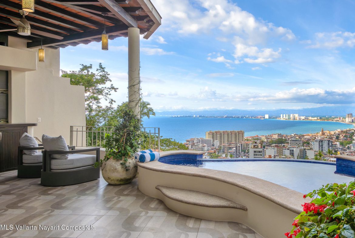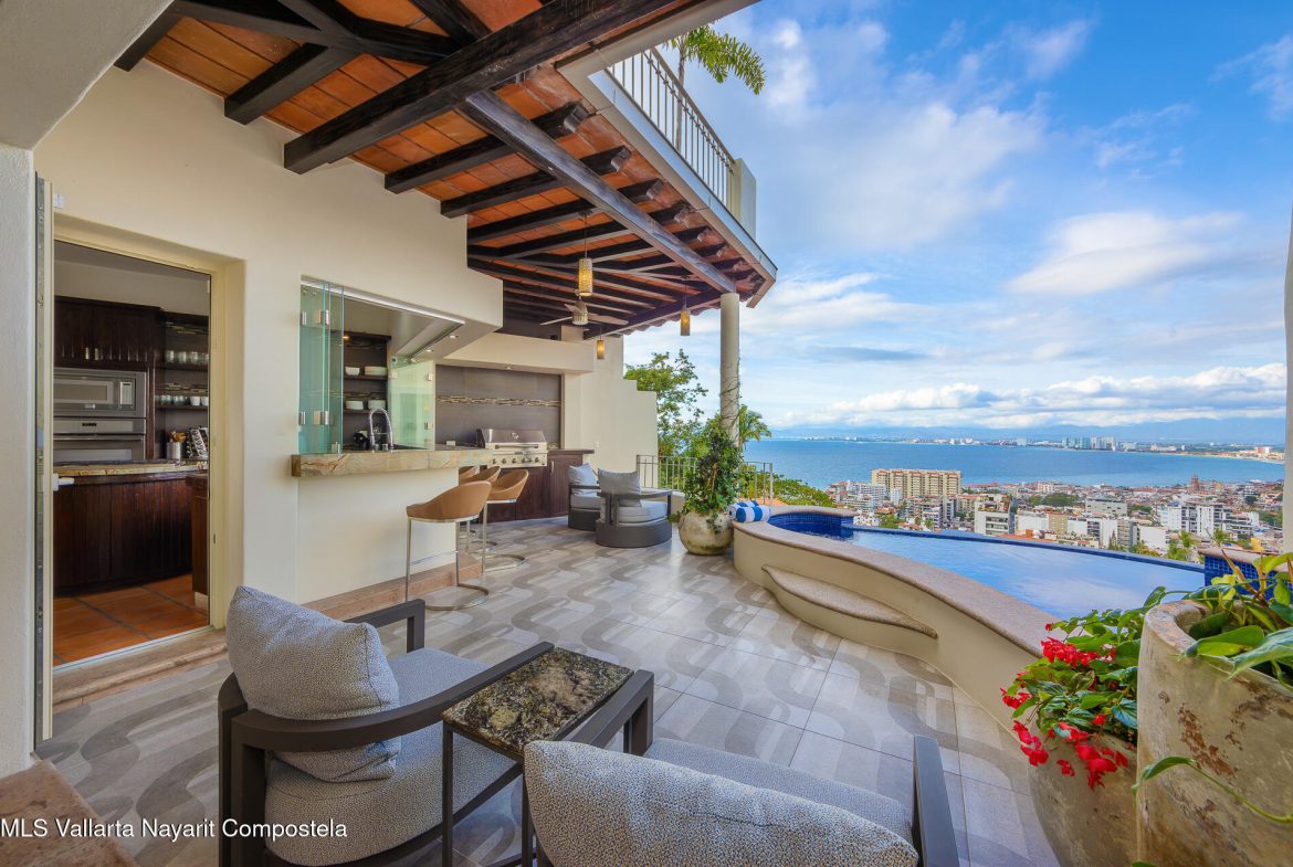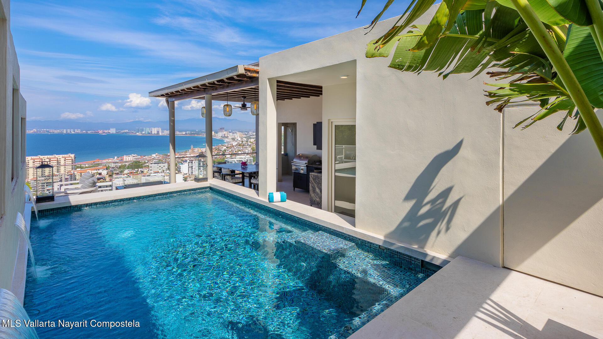 Esta impresionante Casa en Amapas. Privacidad, elegancia, 2 piscinas y una vista! se encuentra en la cima de Gardenias con amplias vistas a la Ciudad y la bahia. El nivel principal es el espacio de entretenimiento con una amplia sala /comedor que conecta con la cocina gourmet. Tiene un bar interior/exterior, cocina exterior con refrigerador para bebidas y parrilla, una terraza cubierta con asientos y piscina de inmersion. Hay un garaje privado. este nivel, asi como un 1/2 bano. El nivel mas bajo incluye 3 dormitorios grandestodo en suite. Ademas de una terraza con vistas la bahia y la ciudad y un lugar apartado, interior y muy privado, jardin zen con fuente de agua.