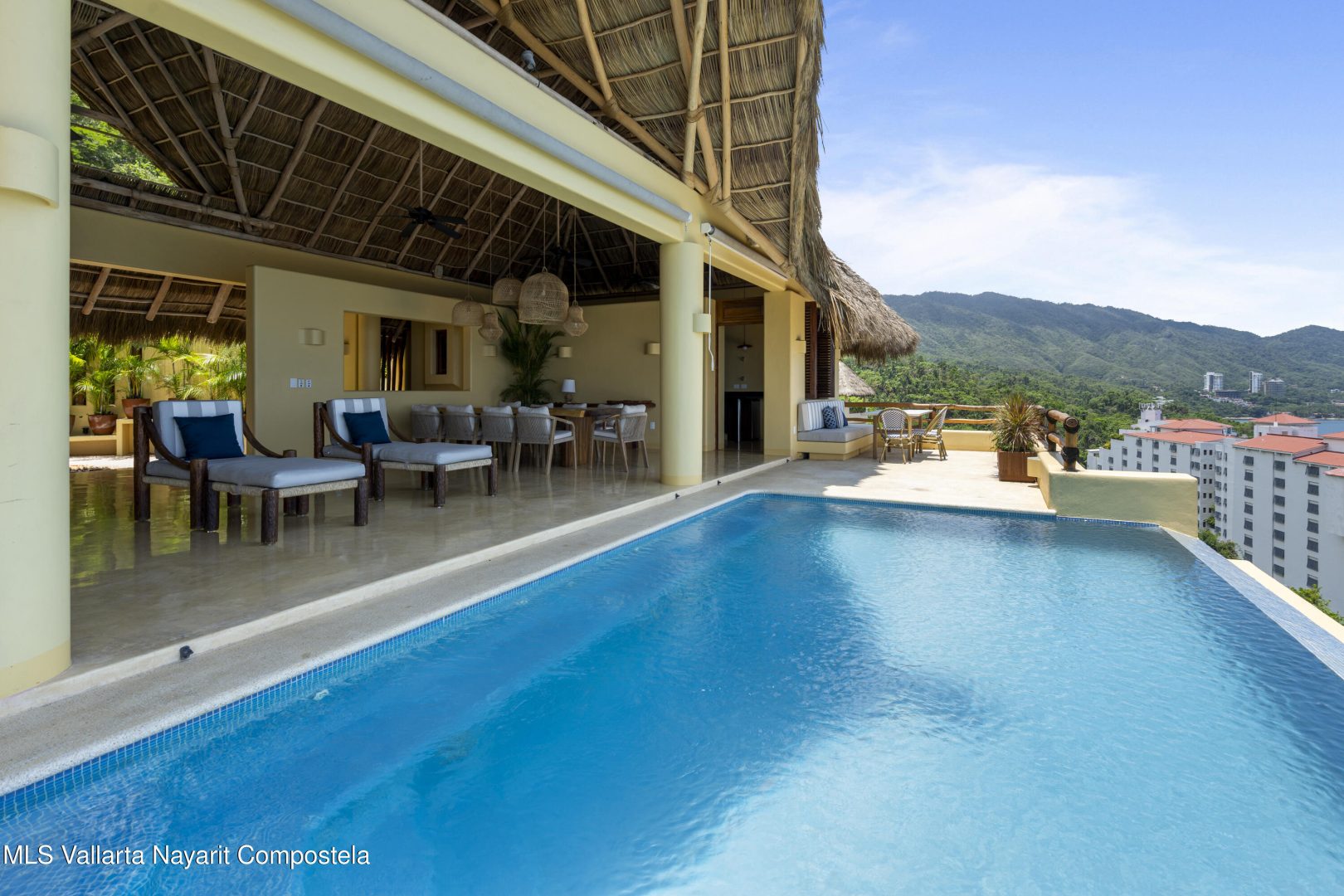 Welcome to Villa Lapa Lapa, an exceptional income-producing luxury villa designed to deliver both unforgettable guest experiences and strong rental performance. Located within the exclusive gated community of San Xoaquin, just 10 minutes from downtown Puerto Vallarta, this remarkable 5-bedroom estate is perfectly positioned for privacy, views, and accessibility. -5 spacious double bedrooms, ideal for large groups -Expansive palapa and ocean-view terraces for entertaining and relaxation -Open-concept living and dining areas acommodating 14-16 guests -Modern, fully equipped kitchen with stunning ocean views -Infinity pool overlooking the bay -Dedicated office space, perfect for remote management or work-from-paradise -Well-designed service and guest areas, laundry, storage and equipment.