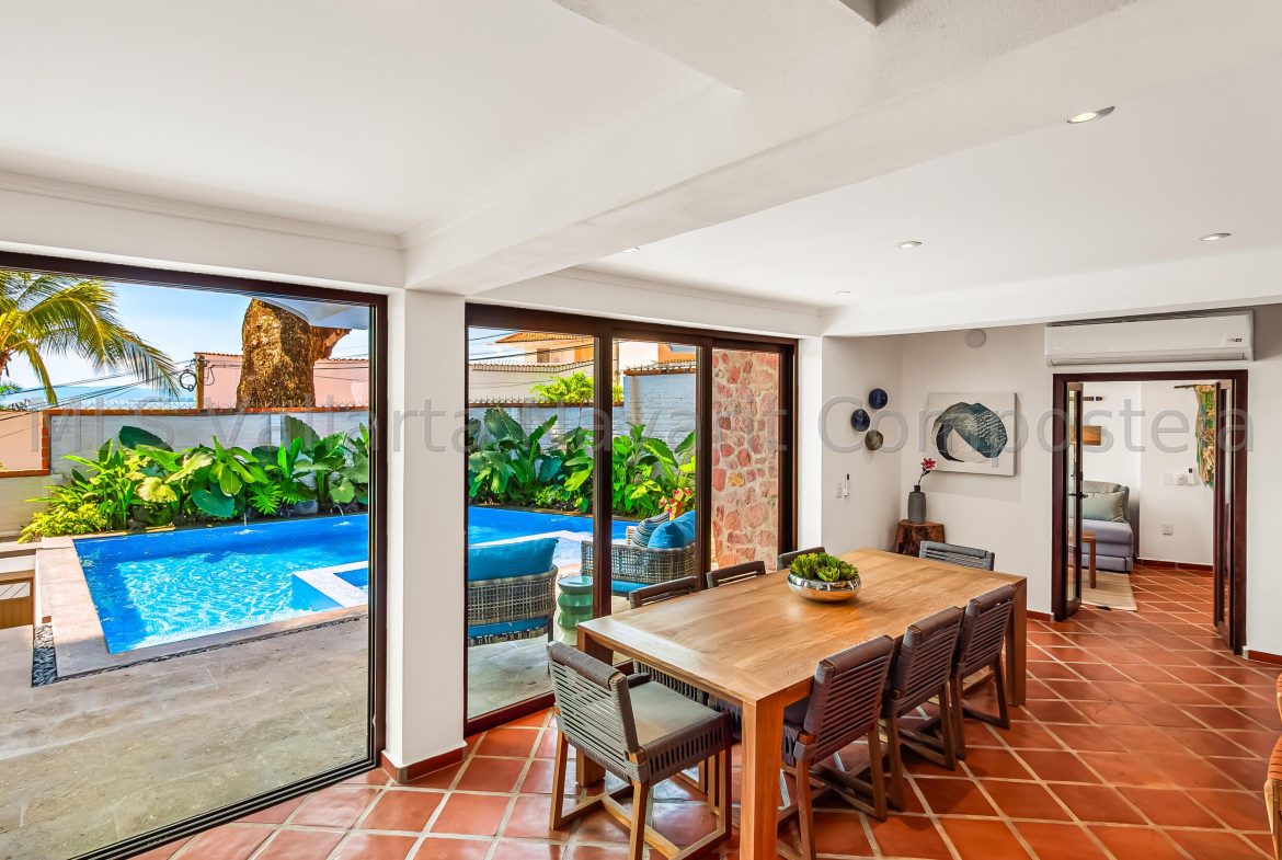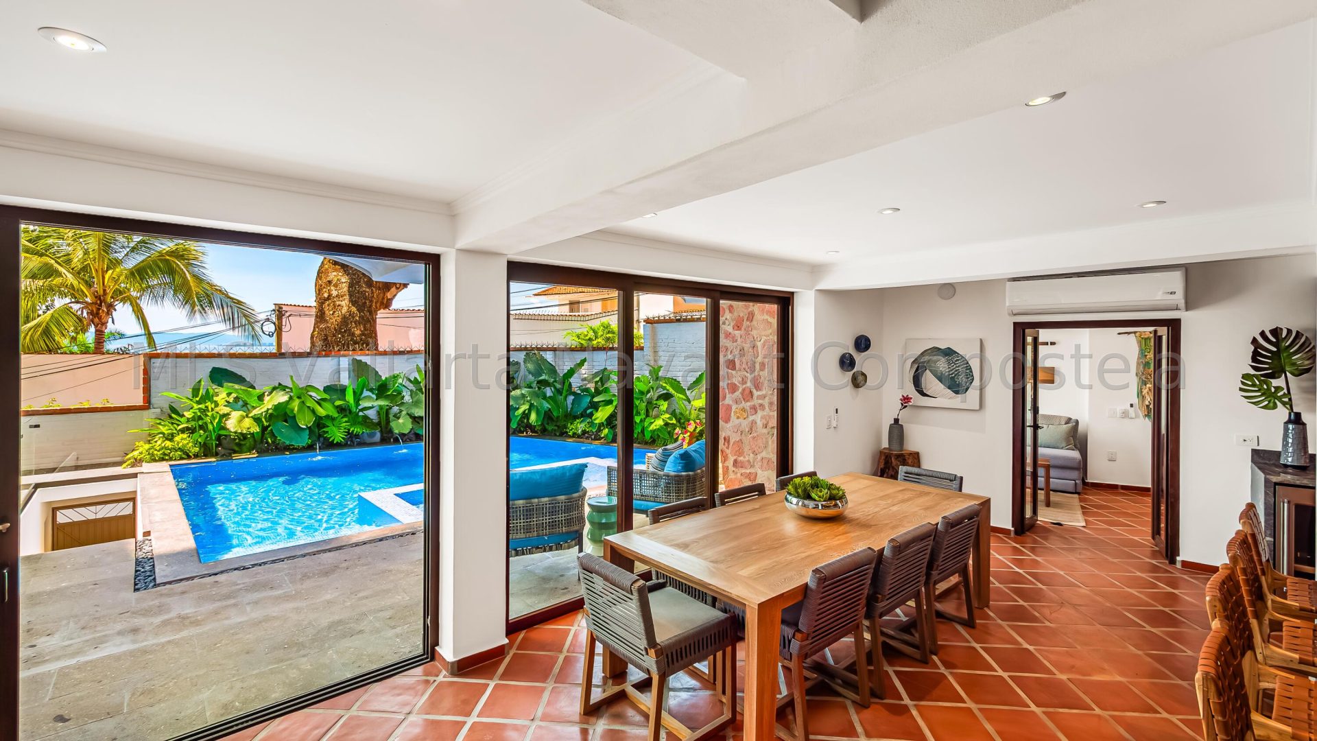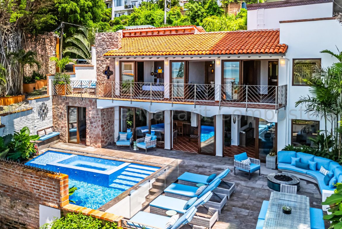Luxury 6 bedroom and 7 bathroom Villa just steps from the beach in Lower Conchas Chinas. Welcome to La Villa Linda, where a classic Mexican villa meets modern chic living. With Ocean views and now over 4000 sq. ft., this spacious estate is perfect for large or intimate groups. Ideally located in the tranquil, upscale neighborhood of ‘Conchas Chinas,’ La Villa Linda is just two-minutes from the famed and lively Zona Romantica and steps to the stunning beaches of Puerto Vallarta ; Set against a backdrop of awe-inspiring ocean views, the brand new pool, spa, fire-pit, fountains and terraces allow the finest of outdoor livingFollowing an extensive and meticulous 18 month renovation and modernization at La Villa Linda, every system and mechanical components has been replaced.