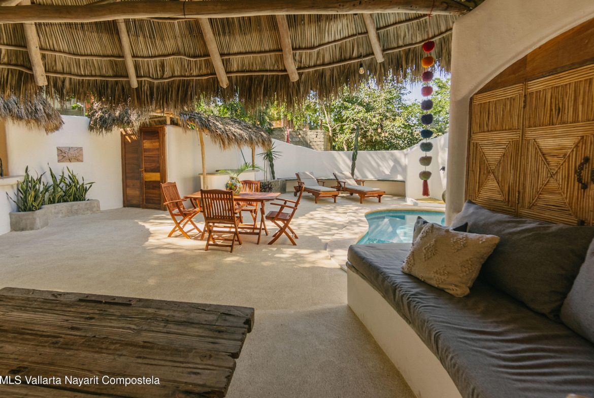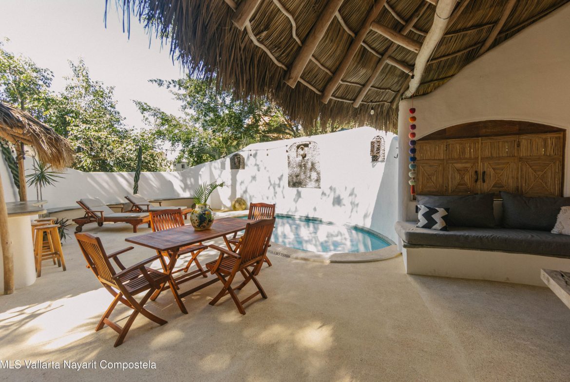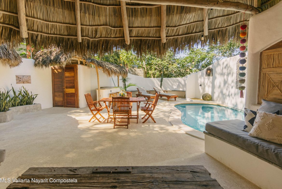 Villa Luna is a 3-bed, 3-bath home in Sayulita’s hills, set on a 790.4 m lot with 380 m of construction. Designed for relaxed coastal living, it features a spacious patio with palapa roofs, open-air lounging, a saltwater plunge pool, and a fully equipped outdoor kitchen with a large dining area. Each bedroom has a private entry; two share a double-sink bath, while the top-floor open-air suite offers ocean views. Just an 8-minute walk to the beach, town center, restaurants, and surf, Villa Luna delivers convenience and strong rental appeal.