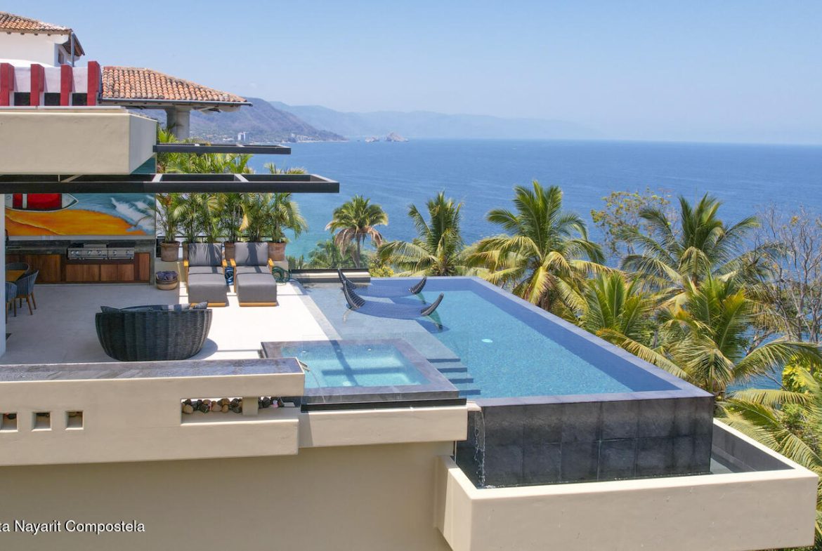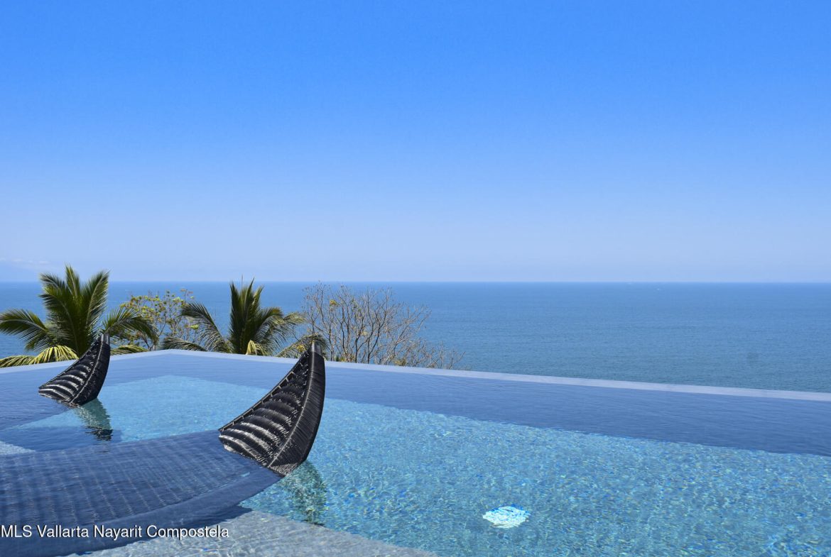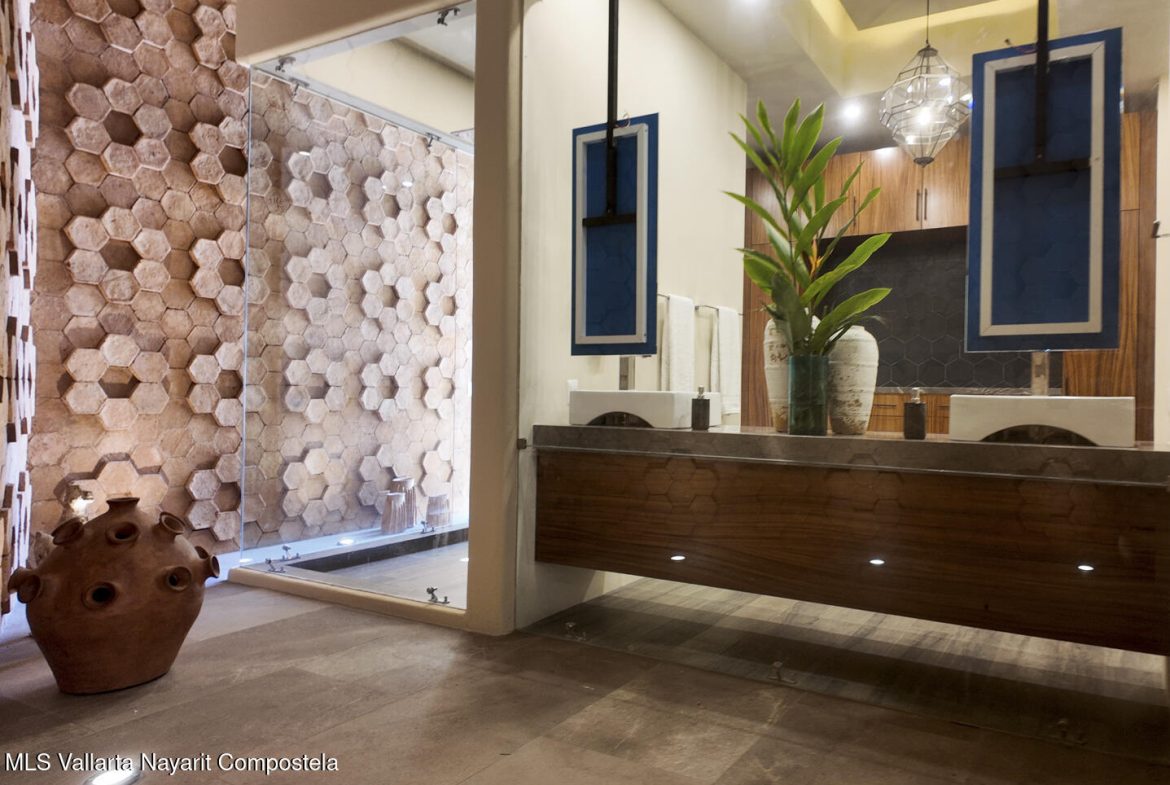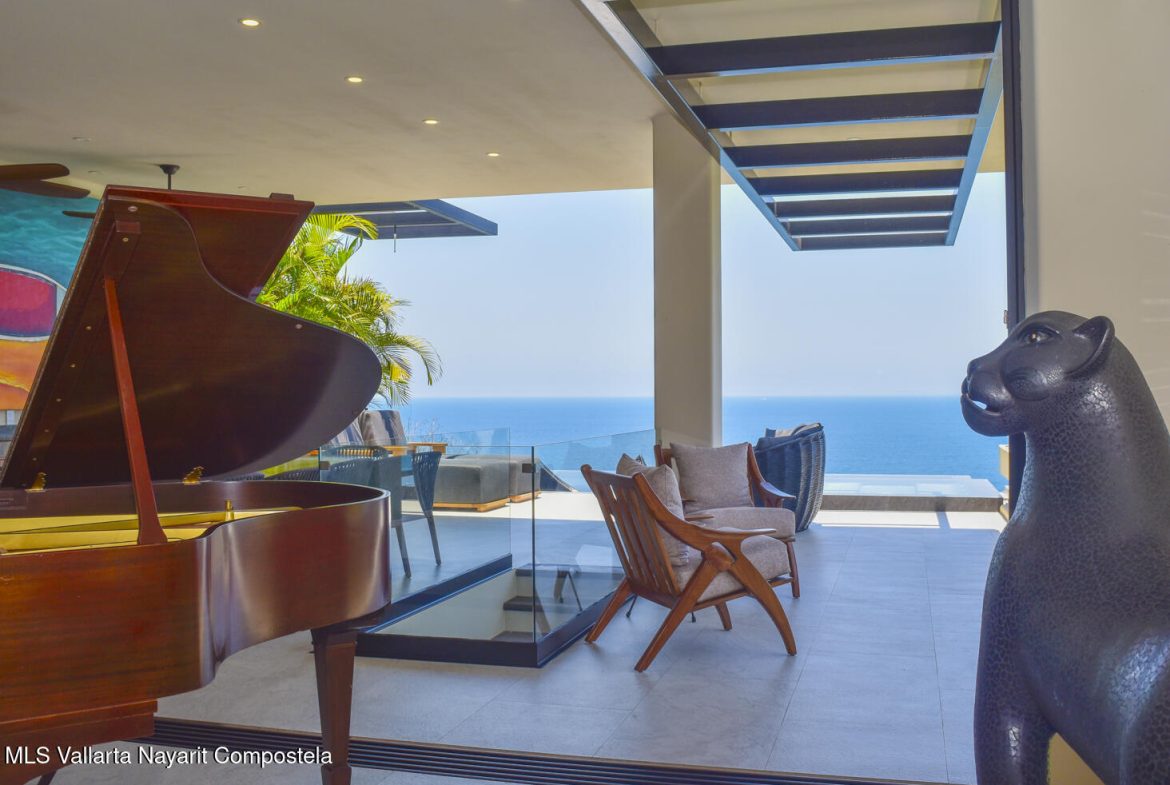 Descansando majestuosamente sobre la bahia, esta recien construida Villa de 4 recamaras y 6 banos, cuenta con sala de medios/teatro, bodega de vinos empedrada, estudio de artista, alberca y cochera para dos carros. Resting majestically above the bay, this recently constructed 4 bedroom 6 bath villa, complete with media / theater room, stone wine seller, artists studio, swimming pool, and 2 car garage.