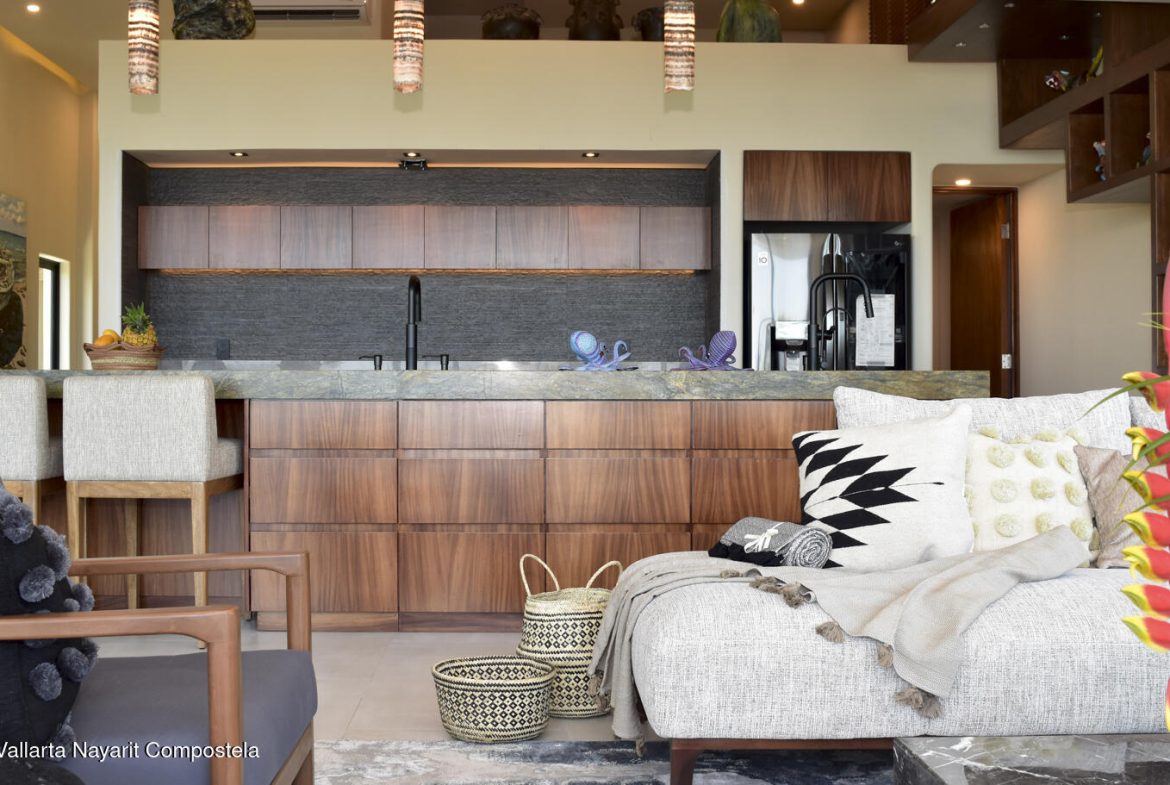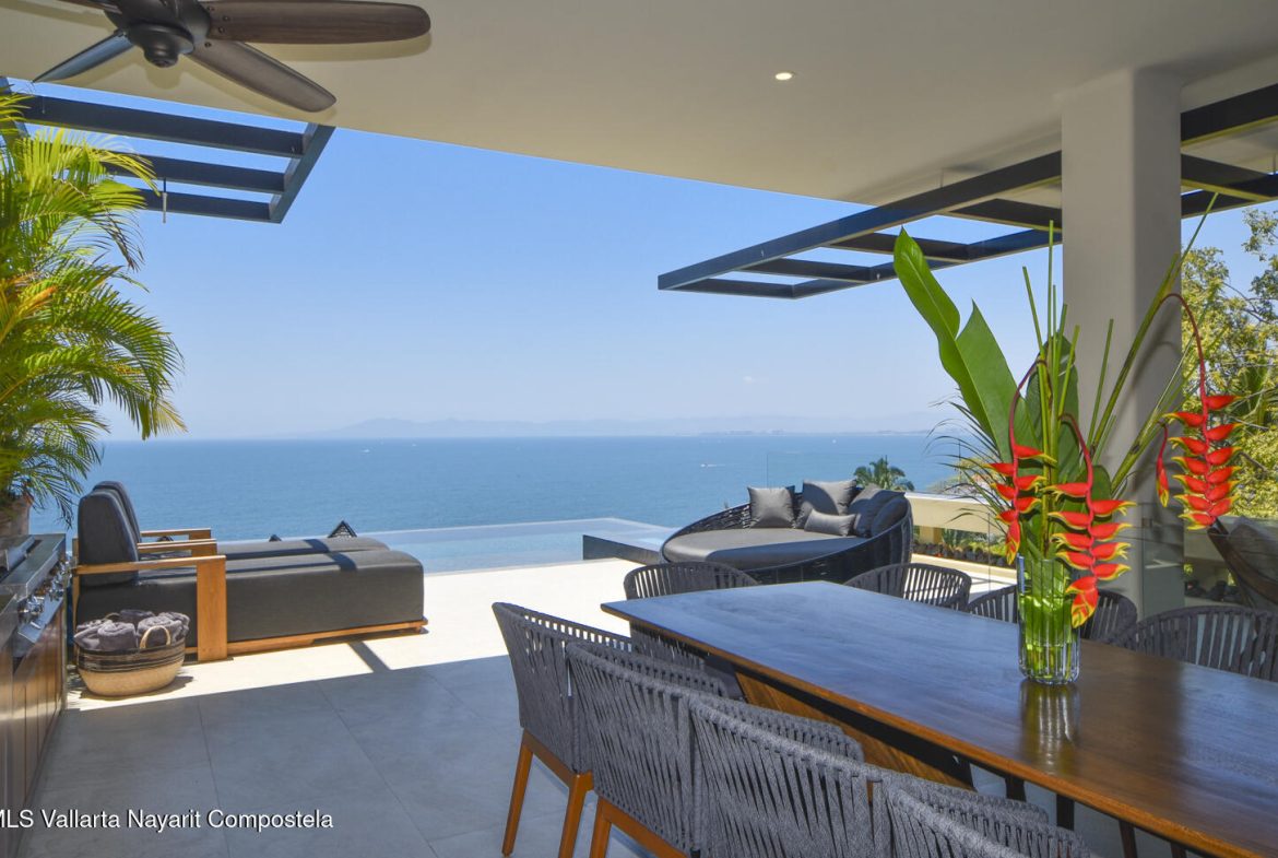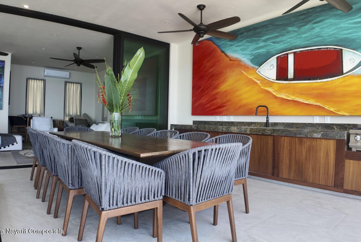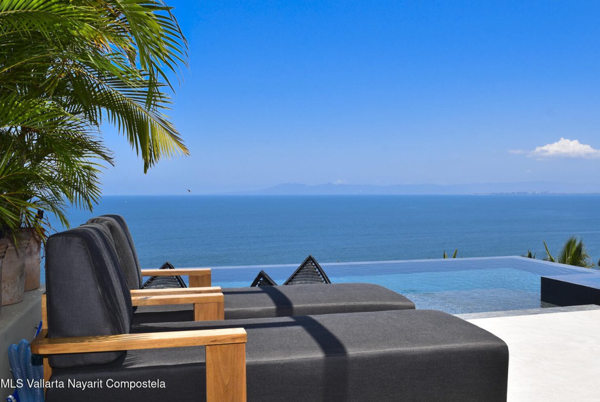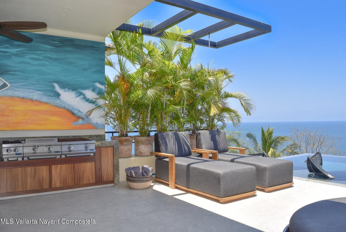 Descansando majestuosamente sobre la bahia, esta recien construida Villa de 4 recamaras y 6 banos, cuenta con sala de medios/teatro, bodega de vinos empedrada, estudio de artista, alberca y cochera para dos carros. Resting majestically above the bay, this recently constructed 4 bedroom 6 bath villa, complete with media / theater room, stone wine seller, artists studio, swimming pool, and 2 car garage.