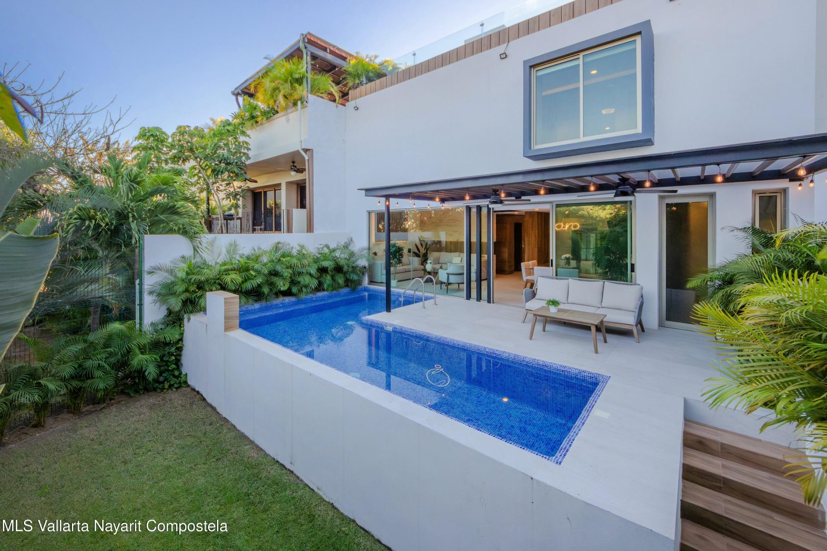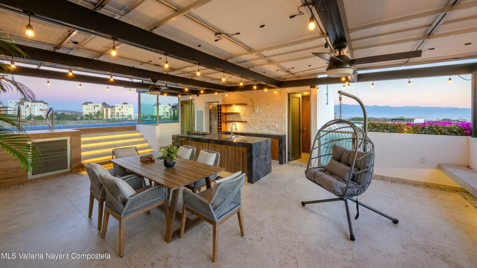 This spectacular residence redefines luxury and comfort in Riviera Nayarit. Designed for those seeking a sophisticated yet relaxed lifestyle, this property blends modern architecture, spacious interiors, and exclusive amenities. With access to the exclusive Beach Club, you can enjoy golden sand, infinity pools, and top-tier services just steps from your residence. This fully furnished home features 4 spacious bedrooms with on-suite baths, 2 half bathrooms. This home boasts a stunning rooftop terrace with a BBQ area, covered lounge space, and a second heated pool From the solar panels, covered garage for 4 cars to the private elevator, every aspect of this home is designed to provide a seamless luxury living experience.