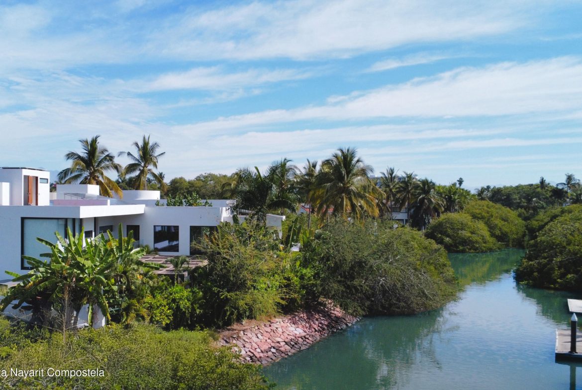 Bienvenido a una exclusiva villa frente al canal, ubicada a aproximadamente 2 km en barco del oceano en Riviera Nayarit, Mexico. Esta lujosa casa a medida, disenada por el aclamado arquitecto mexicano Paolo Rojo, ofrece una experiencia inigualable en uno de los lugares mas codiciados del sur de Riviera Nayarit. Perfectamente adaptada para los amantes de los yates, esta excepcional propiedad le permite tener su yate estacionado justo en la puerta de su casa, ofreciendo acceso directo al agua y el mejor estilo de vida frente al mar. Para el inversionista exigente que anhela el estilo de vida exclusivo de Punta de Mita y valora la proximidad a Puerto Vallarta, esta joya unica esta a su disposicion para descubrir y adquirir.