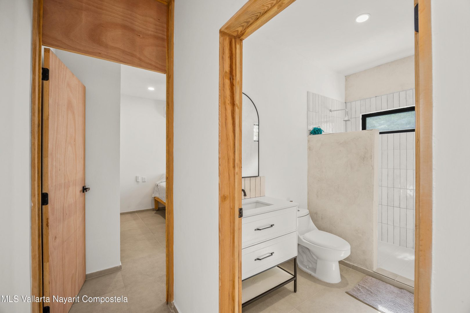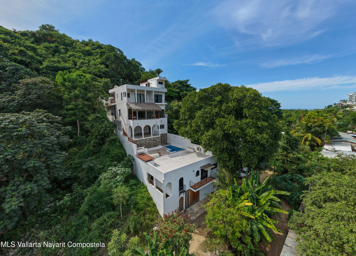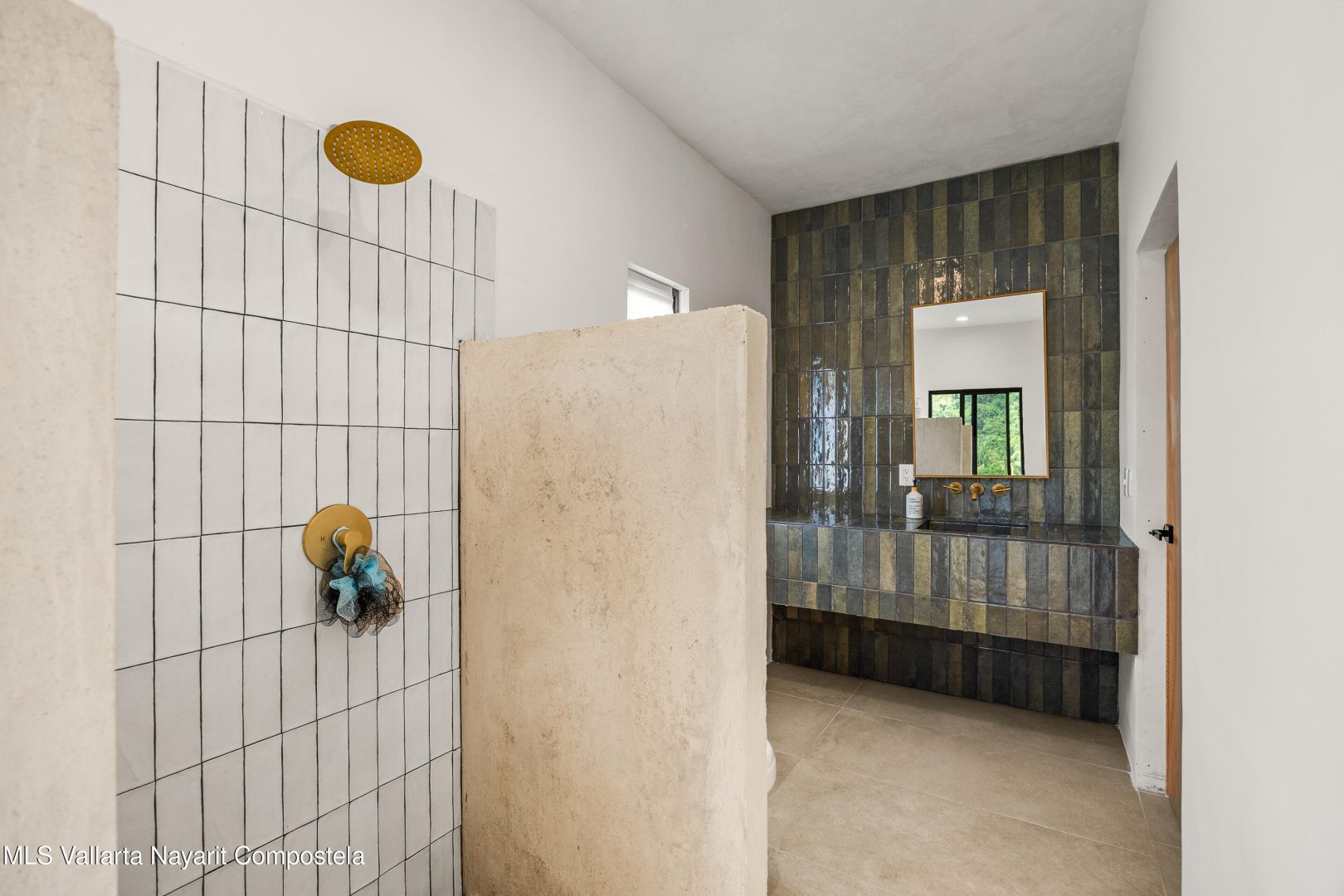 Villa Nueva sits just behind the iconic Quilombo gym at the entrance of Sayulita. Located in a tranquil, low-traffic neighborhood, it provides a calm retreat far from the hustle of town–yet remains only a quick two-minute golf cart ride from Sayulita’s lively plaza, range of restaurants, boutique shops, and sun-soaked beaches.This contemporary and elegant four-story residence features two separate entrances: one on Punta Mita Highway and another on Avenida Revolucion. With a total land area of 384.4 m2 and about 400 m2 of living space, the property offers five bedrooms, four full bathrooms, a swimming pool, two kitchens, two living rooms, a dining room, and a two-car garage.