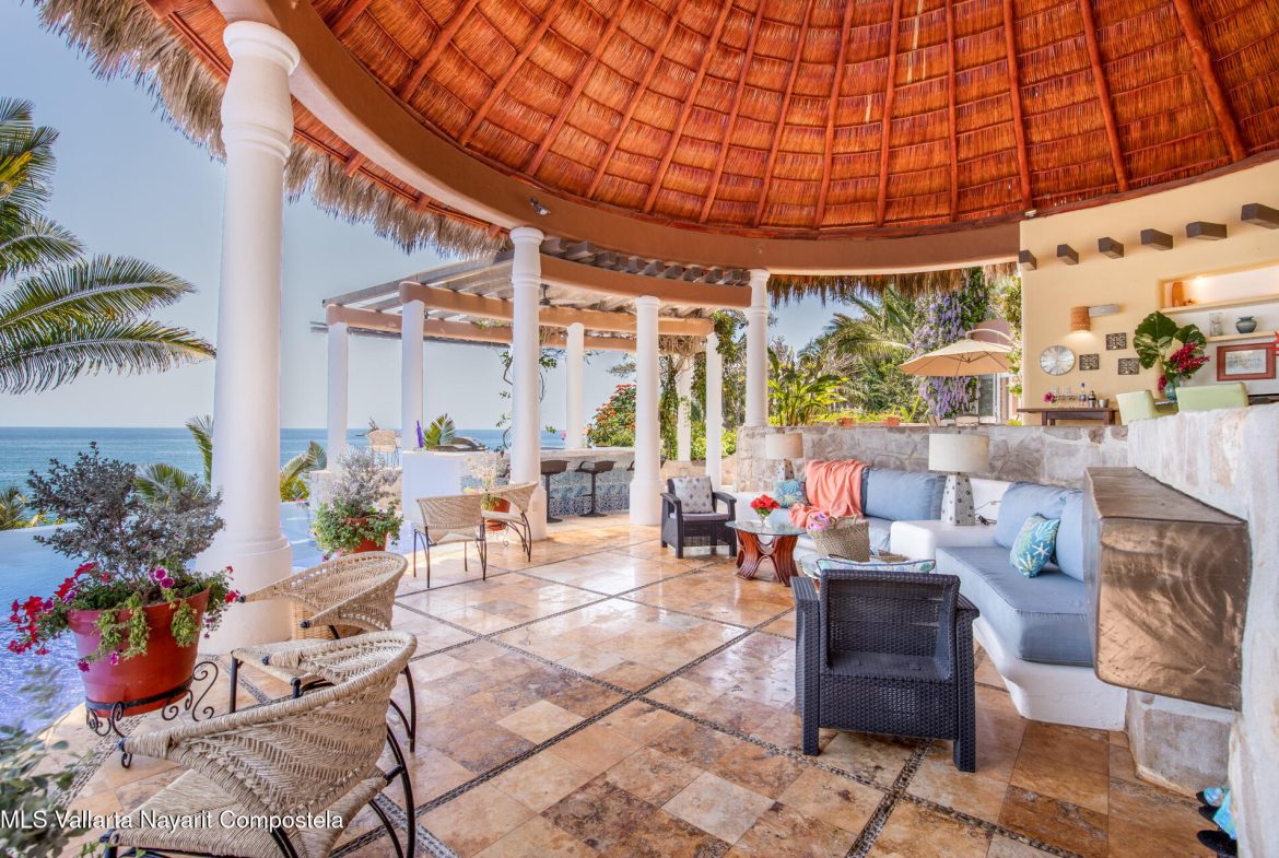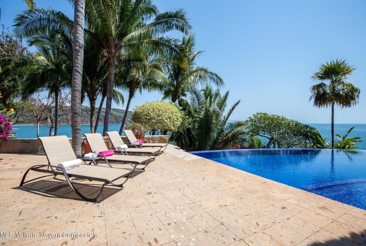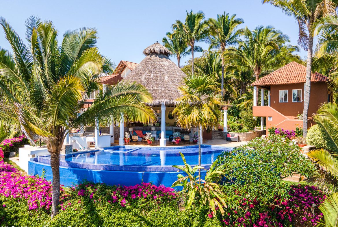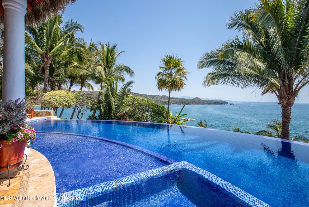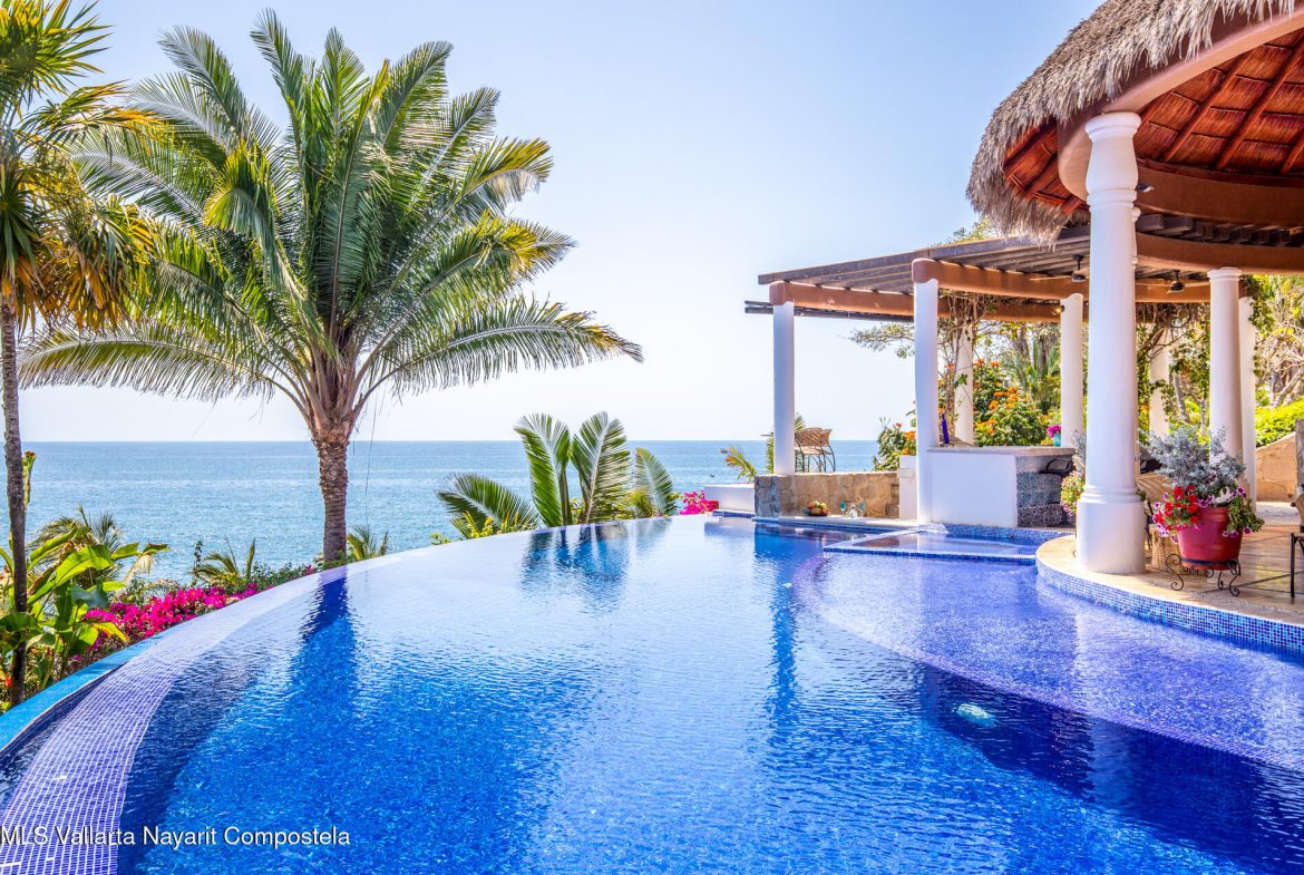 Bienvenido a una villa tropical unica en la exclusiva comunidad cerrada de Marina Chacala. Ubicada frente al mar en un promontorio con vistas panoramicas de 250 al Oceano Pacifico, esta Super Villa combina lujo relajado, privacidad y seguridad. Ofrece 5 recamaras con bano privado, una amplia palapa que integra sala, bar y comedor, ademas de una piscina infinita rodeada de jardines exuberantes con estanque de peces y varias terrazas para disfrutar del sol. La propiedad incluye tambien casa de huespedes, cuartos para el personal, estacionamiento y bodegas. Con gran potencial de renta y espacio para futuros proyectos, representa tanto un hogar de ensueno como una excelente inversion.