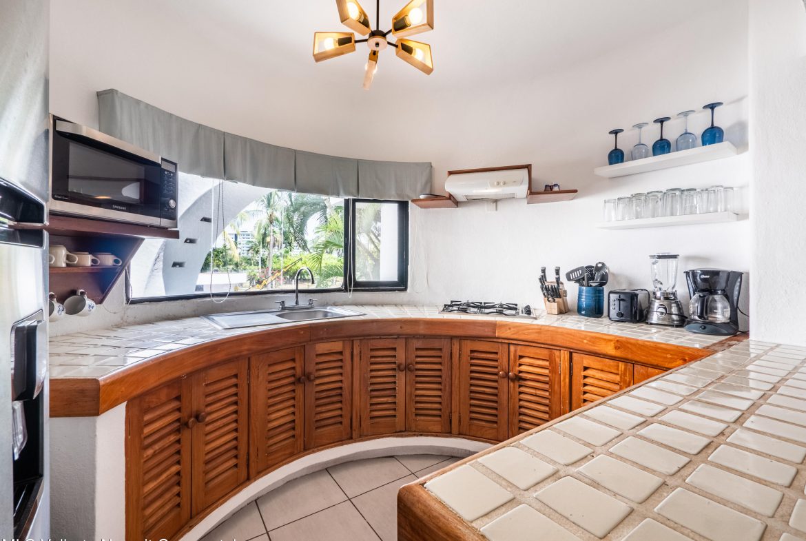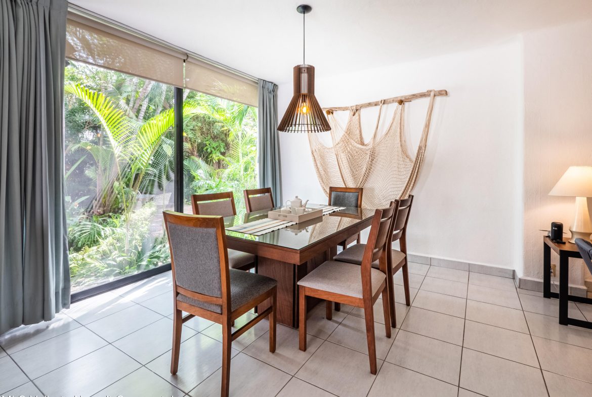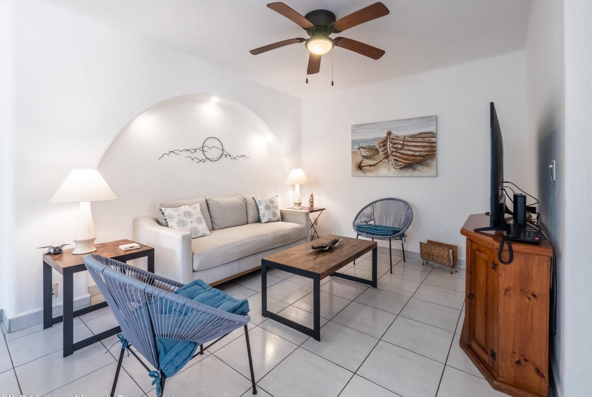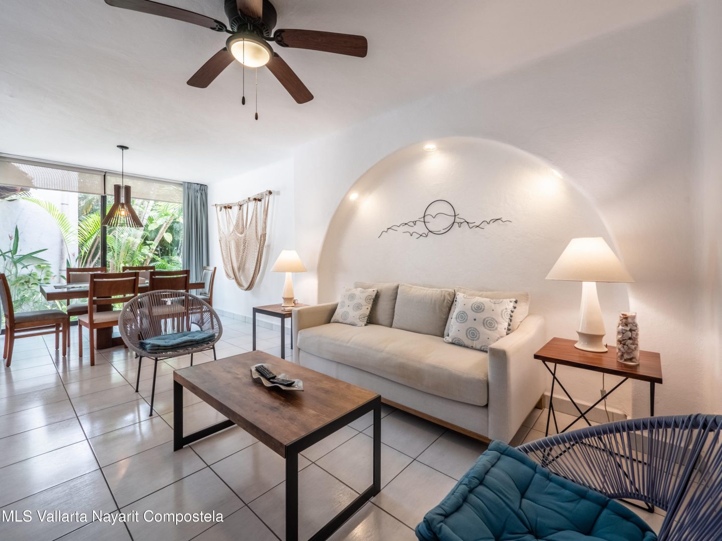 Villa Pelicanos is one of the 37 villas that border the Marina Vallarta golf course, where nature and privacy blend in harmonious balance. On the ground floor, the living room opens onto a garden-surrounded patio, creating a warm and seamless atmosphere next to a practical kitchen and a half bathroom. On the upper level, two light-filled bedrooms elevate the space with high ceilings: one featuring wooden finishes and the other an elegant dome; both include a full bathroom and a laundry center. The common areas offer a pool with a wonderful view of the golf course. The villa includes underground parking and a private storage room next to its assigned space. Security 24 hours. Close to shops, restaurants, and the Marina boardwalk.