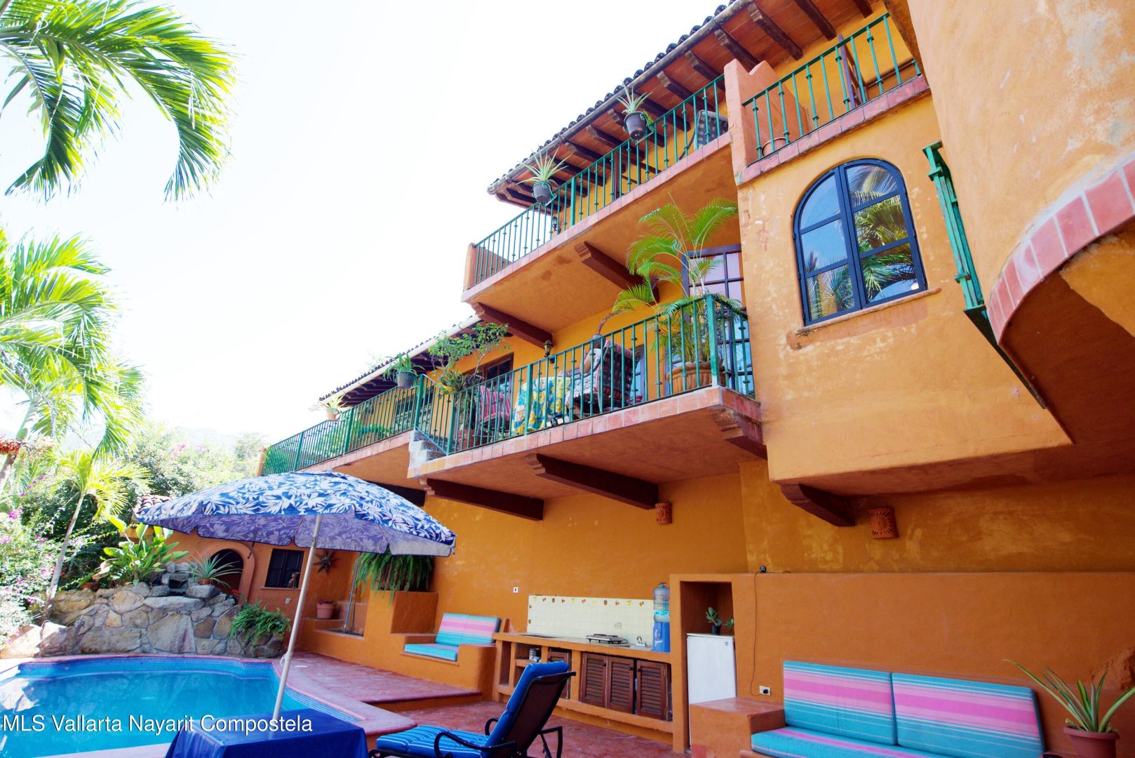 ENGLISH BELOW. Esta impresionante casa estilo hacienda de varios niveles, ubicada en una ladera selvAtica con vistas a la playa en el encantador pueblo pesquero de Boca de TomatlAn, ofrece 325 mA de espacio interior, 5 dormitorios y 5 baA+/-os completos, ademAs de piscina y Area de invitados privada. Cuenta con terrazas con mAs de 215 mA de espacio exterior.