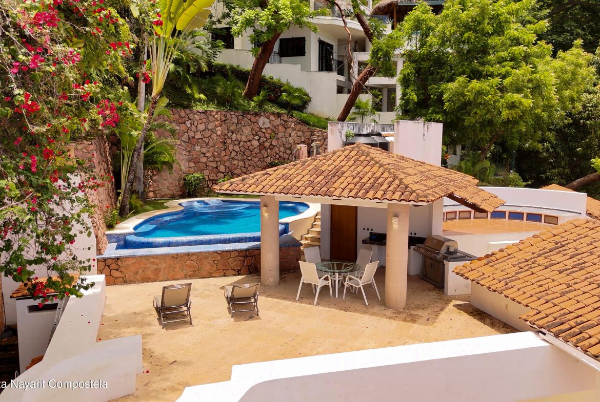 Villa Talisman, en la zona alta de Conchas Chinas, ofrece vistas espectaculares al mar y la selva. Con 4 recamaras, 5 banos, terrazas amplias, alberca privada y casa de servicio. Diseno que garantiza privacidad. Se vende sin muebles. A minutos de la playa y del centro de Vallarta.——-Villa Talisman sits high in Conchas Chinas with breathtaking ocean and jungle views. It offers 4 bedrooms, 5 bathrooms, large terraces, private pool, and staff quarters. Layout designed for privacy. Sold unfurnished. Just minutes from downtown and the beach.