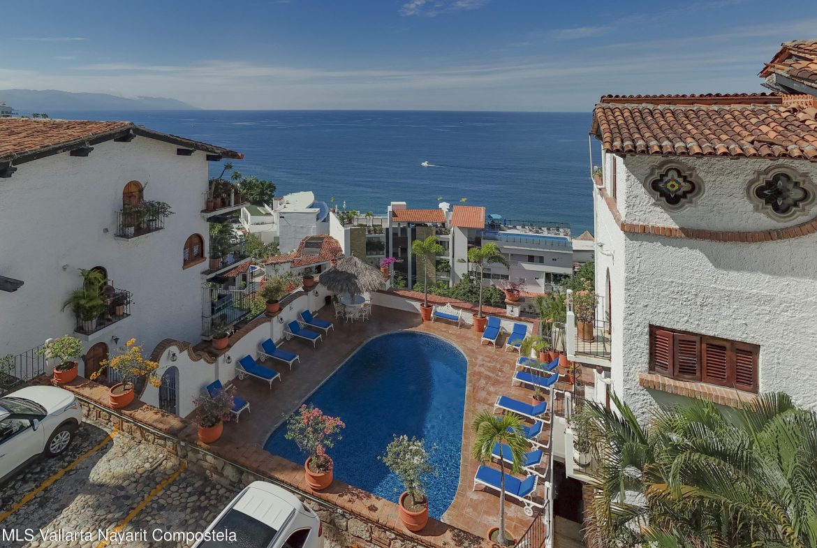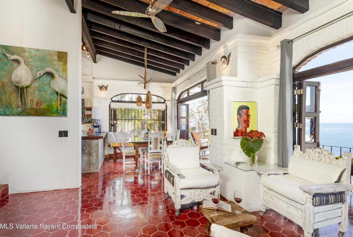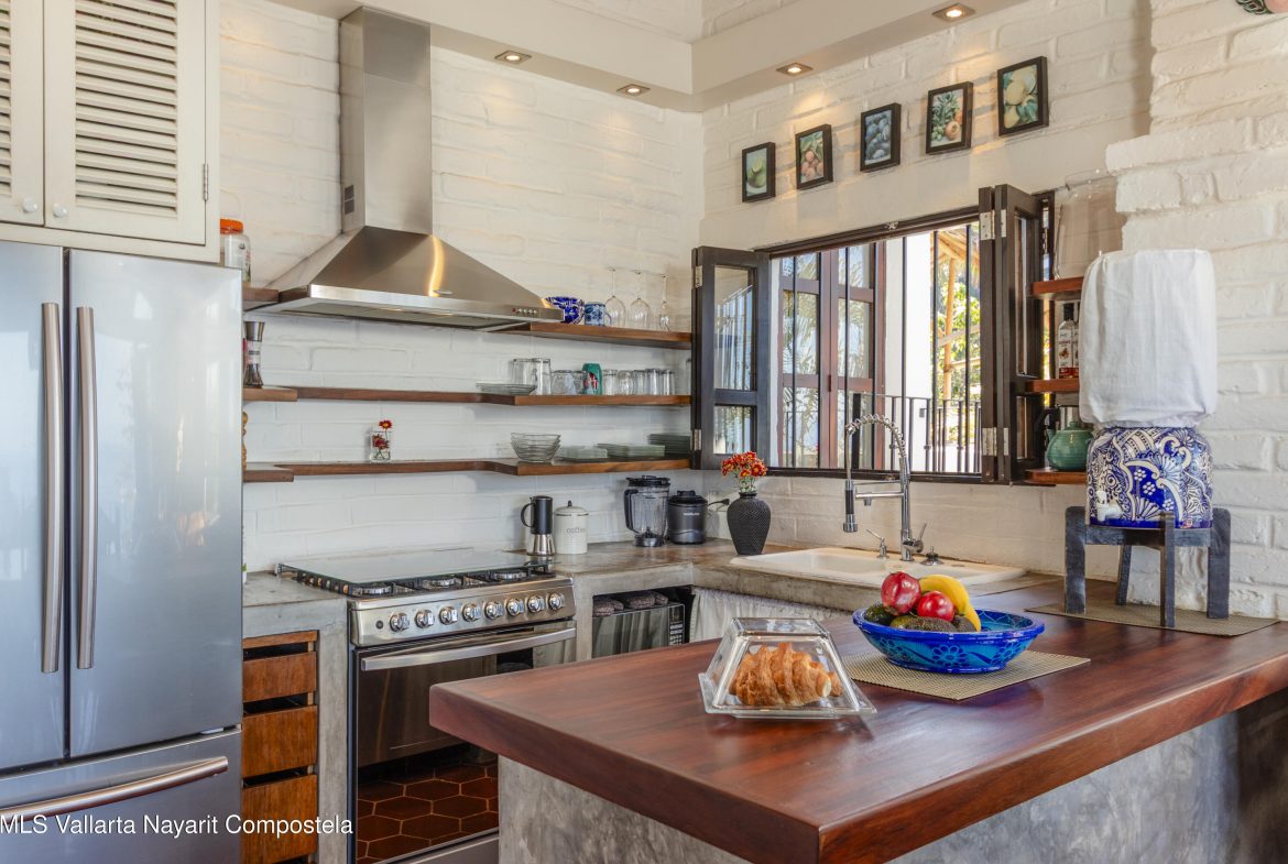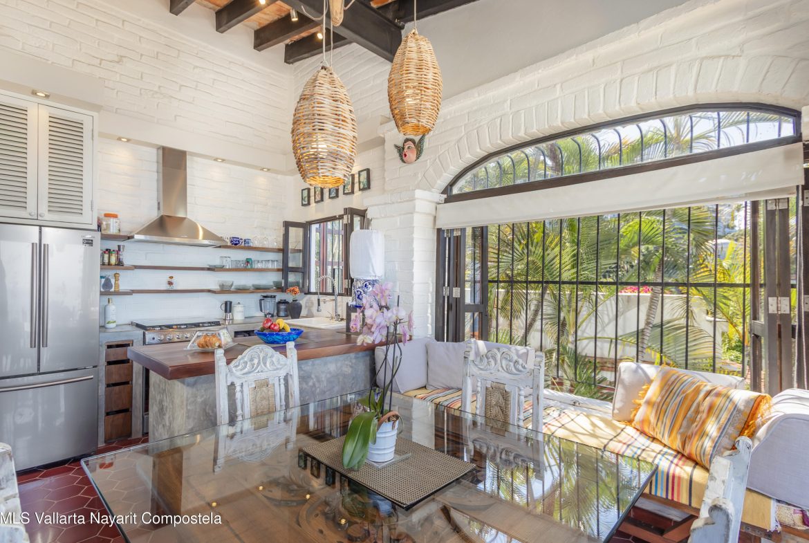 Amapas. Penthouse – Villa Tizoc #7Impresionante penthouse de 104 m (1122 pies cuadrados) ubicado en la cima de Villa Tizoc, con espectaculares vistas panoramicas de la Bahia de Banderas. Este luminoso apartamento de 2 recamaras y 2 banos cuenta con cocina de concepto abierto, comedor y sala de estar con vista al Pacifico. Disenado profesionalmente con una combinacion de elementos mexicanos modernos, shabby chic e industriales.Disfrute de una terraza frontal completa, acceso al funicular, piscina climatizada, seguridad 24/7, estacionamiento flexible, aire acondicionado independiente, politicas que admiten mascotas y aprobacion para alquileres a corto plazo. La cuota de la comunidad incluye gas y agua.Uso Notario 29.