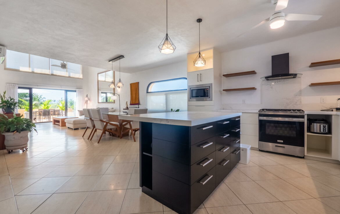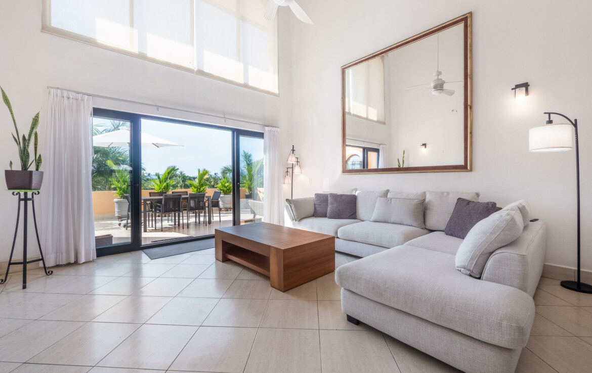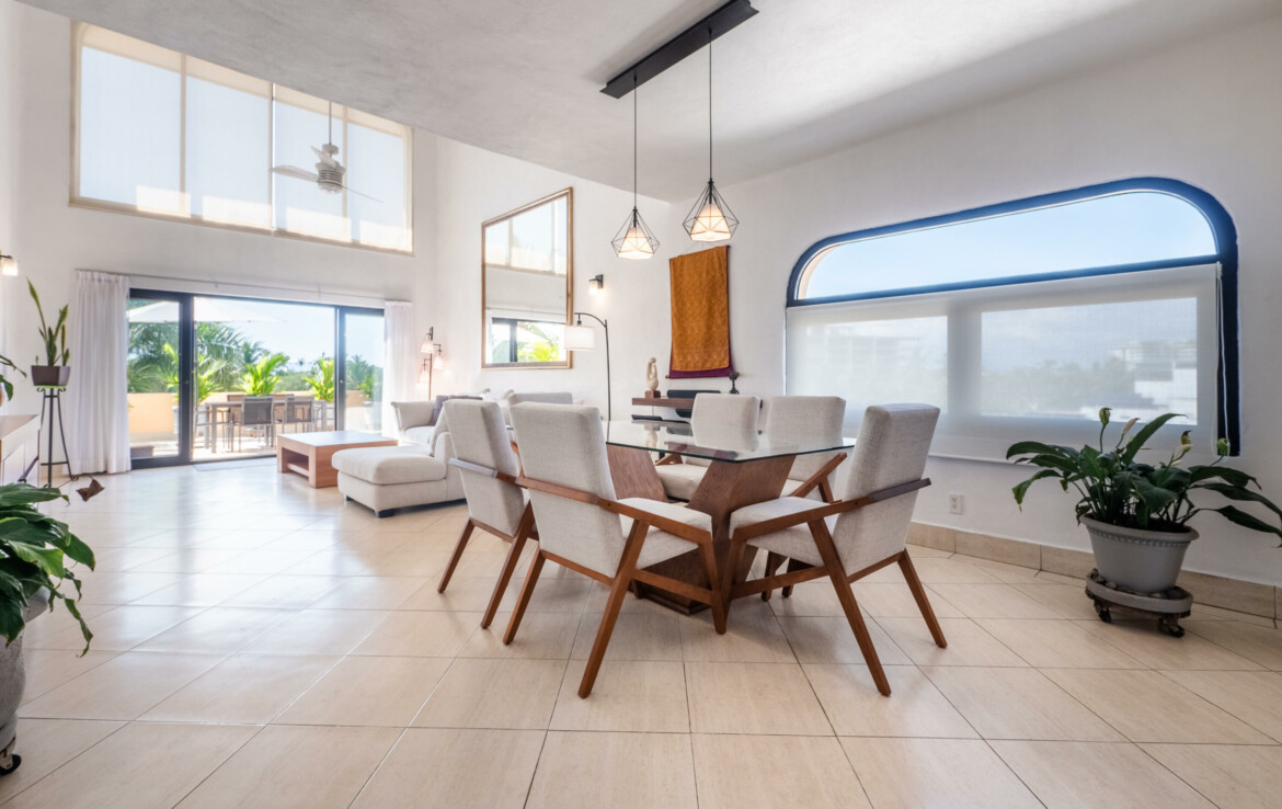 Hermoso y renovado PH de 2 niveles con vistas impresionantes al campo de golf y abundante luz natural. 3 amplias recamaras, oficina, 2.5 banos, estacionamiento, amplia terraza con asador, sala a doble altura, mezzanine, y todo el mobiliario y equipamiento para vivir o tener ingresos por rentas en el corazon de la Marina, a solo 1 cuadra del faro. Seguridad 24/7, elevador, alberca climatizada de agua salada.Gorgeous, renovated 2-story PH wit stunning views to the golf course and abundant natural light. 3 ample bedrooms, office, 2.5 baths, deeded parking, big terrace with a BBQ, double-height living, mezzanine, fully furnished and equipped to live it or to get a passive income in the heart of the Marina, just one block from the lighthouse. 24/7 security, elevator, salt-water heated pool.
