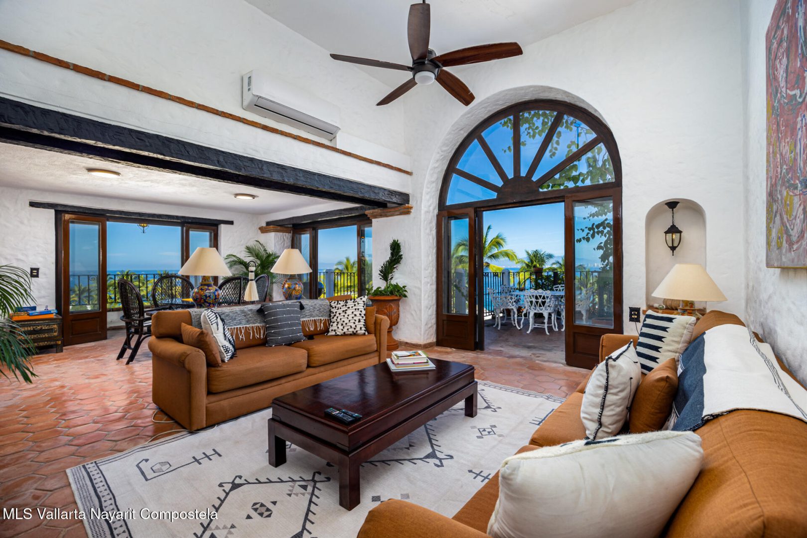 Villas Altas Garza Blanca 306 combina encanto tradicional con detalles artesanales como azulejos pintados a mano, pisos de Saltillo, vigas de madera y cupulas esculpidas. Esta casa de mas de 3,600 pies cuadrados cuenta con techos altos, amplias recamaras con bano completo y balcones con vistas espectaculares al oceano, las montanas y la ciudad. Relajate en la alberca privada de la terraza, a pocos pasos de las playas de Puerto Vallarta. — Villas Altas Garza Blanca 306 combines traditional charm with handcrafted details like hand-painted tiles, Saltillo floors, wooden beams, and sculpted cupolas. This 3,600+ sq. ft. home offers vaulted ceilings, spacious en-suite bedrooms, and balconies with stunning ocean, mountain, and city views.
