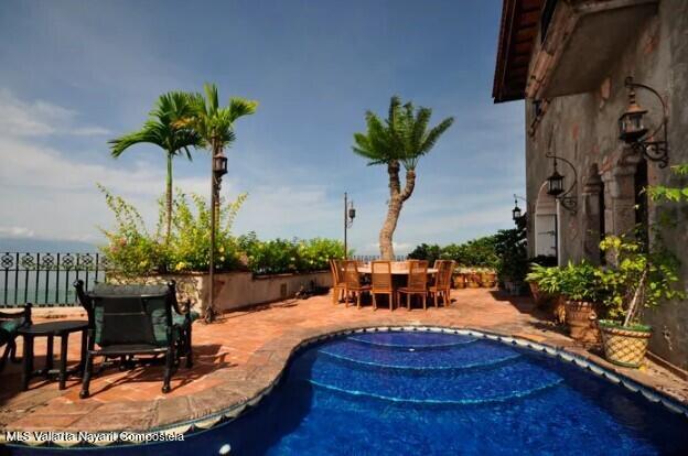 Disfrute la vista panoramica de la playa Conchas Chinas y la oportunidad unica de adquirir el penthouse mas grande de Puerto Vallarta. Con mas de 13,000 pies cuadrados, esta propiedad cuenta con 5 recamaras, 7 chimeneas, 6 banos, sala de cine, cocina con 2 refrigeradores y 4 congeladores Sub-Zero, alberca privada, elevador privado y cochera para 2 autos. Este condominio ofrece mucho mas que la mayoria de las villas.Resting with a view over Conchas Chinas beach find your rare chance to acquire Puerto Vallarta’s largest penthouse. At more than 13,000 square feet, this property with 5 bedrooms, 7 fireplaces, 6 bathrooms, media room, kitchen with 2 subzero refrigerators and 4 subzero freezer drawers, private pool, private elevator and 2 car garage, this Condo offers