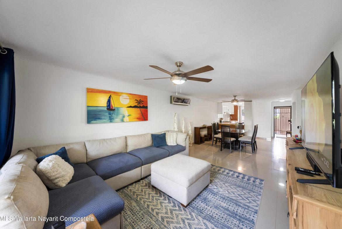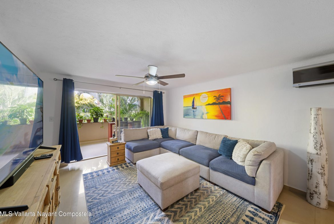 Bienvenido a Villas del Country, un complejo boutique que bordea el tee 11 del campo de golf Marina, con solo 42 unidades, personal de seguridad las 24/7, gran piscina, areas para tomar el sol, palapa, pergola, jardin de hierbas, arboles frutales y jardines bellamente cuidados. La villa #8 en el 2do nivel es llave en mano. Cuenta con puerta de seguridad, 2 dorms + 2 banos, amplio espacio de almacenamiento en todas las habitaciones, salida de la sala a un balcon muy privado con vistas al campo de golf y al jardin, estacionamiento asignado en la propiedad. La baja HOA incluye gas, agua, mantenimiento de areas comunes, seguridad, administracion en el lugar. Cerca de las tiendas y restaurantes Marina Malecon, la tienda de comestibles Soriana, el Club de Golf y la playa.
