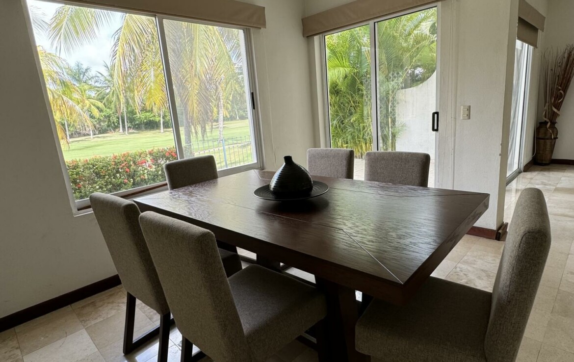 (English Below)Esta villa de dos plantas, con cuatro habitaciones y una impresionante vista al campo de golf, cuenta con acabados de alta gama, dos lugares de estacionamiento techado y una ubicacion privilegiada en un coto privado con alberca, area de BBQ, areas verdes y seguridad las 24 horas.Idealmente ubicada a solo 5 minutos del vibrante Paseo de la Marina, disfruta de acceso inmediato a restaurantes, bares, cafeterias y tiendas boutiques. La playa tambien esta a solo minutos, lo que le permite disfrutar plenamente del estilo de vida costero.Ya sea que busques una residencia permanente o un refugio vacacional, esta propiedad ofrece la combinacion perfecta de comodidad, seguridad y una ubicacion privilegiada.This two-floor Villa with four bedrooms and a stunning golf course