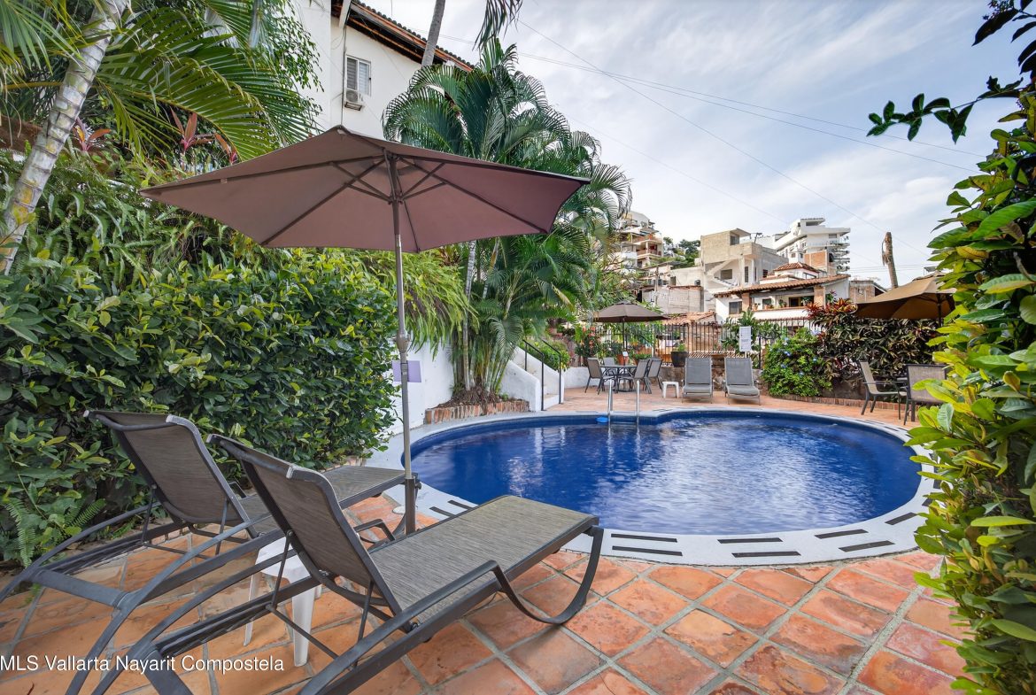 Condo Jacarandas 4A es un condominio en venta en Puerto Vallarta, ubicado a solo 5 minutos de Playa Los Muertos, en la Zona Romantica. Cuenta con 2 recamaras, 2 ba y 107m2, con arquitectura mexicana tradicional. Ofrece alberca climatizada y una excelente ubicacion caminable, ideal como residencia, casa vacacional o propiedad de inversion.— ENGLISH Condo Jacarandas 4A is a condo for sale in Puerto Vallarta, located just 5 minutes from Los Muertos Beach in the heart of Zona Romantica. This 2-bedroom, 2-bath condo offers 107 m2 of living space with traditional Mexican architecture. Features include a heated pool and a prime walkable location, ideal as a vacation home, full-time residence, or investment property.