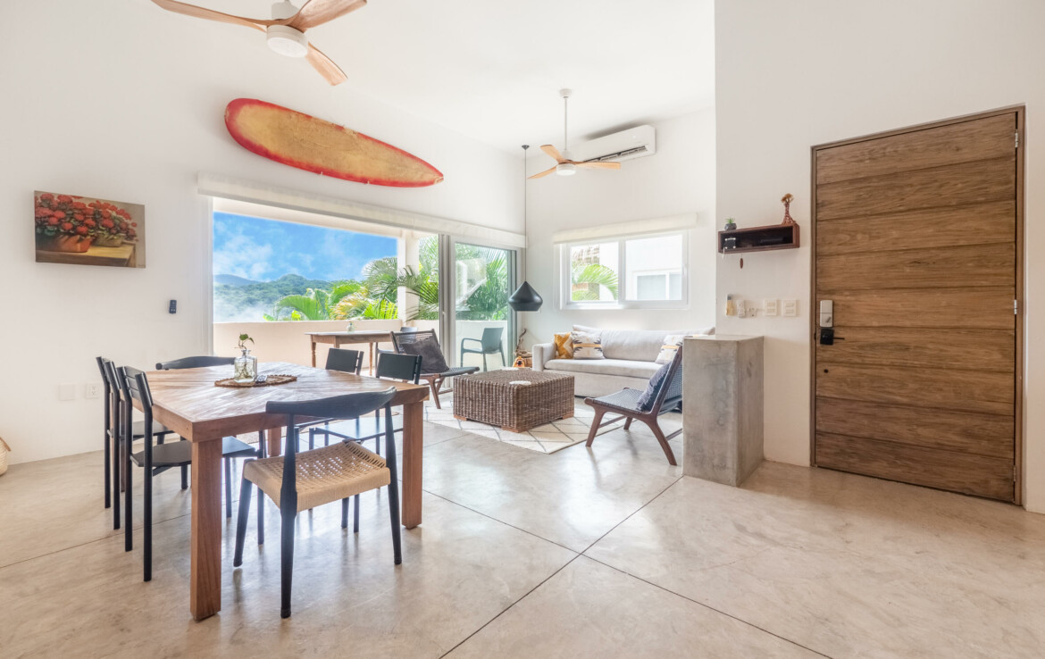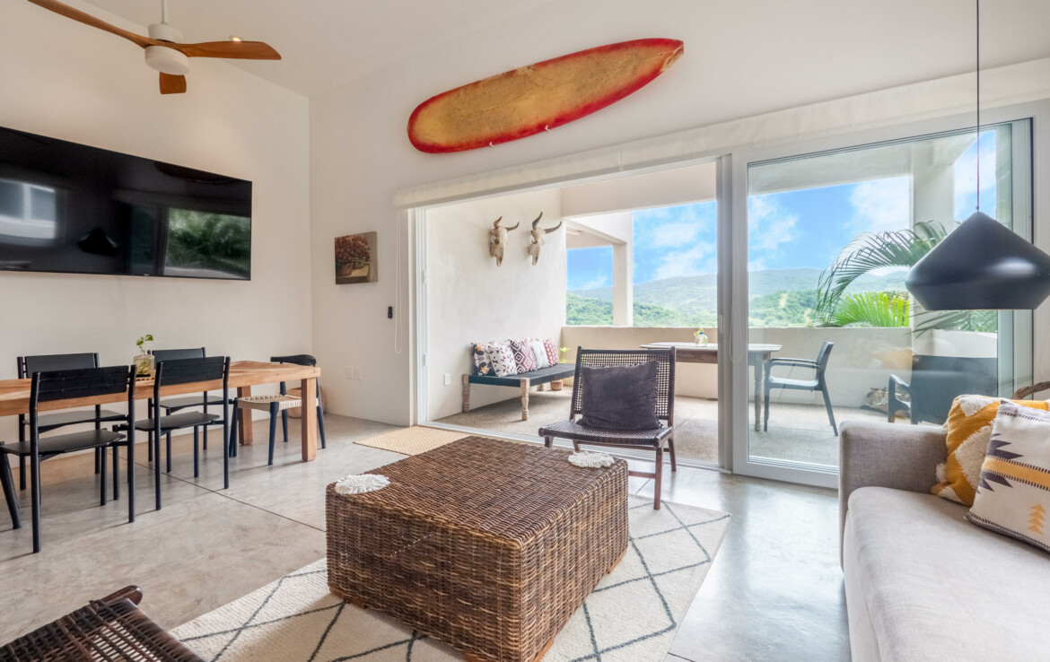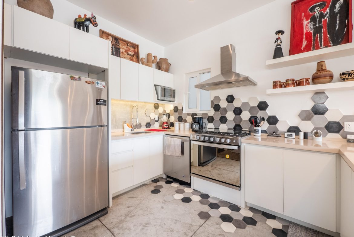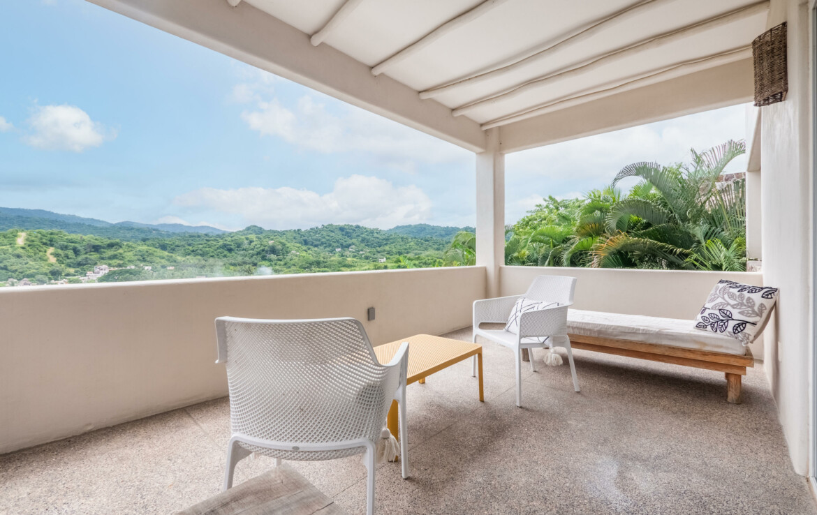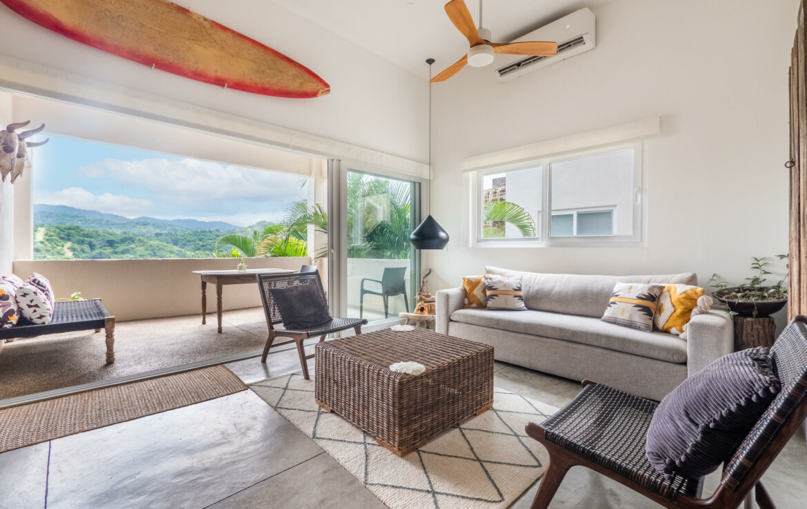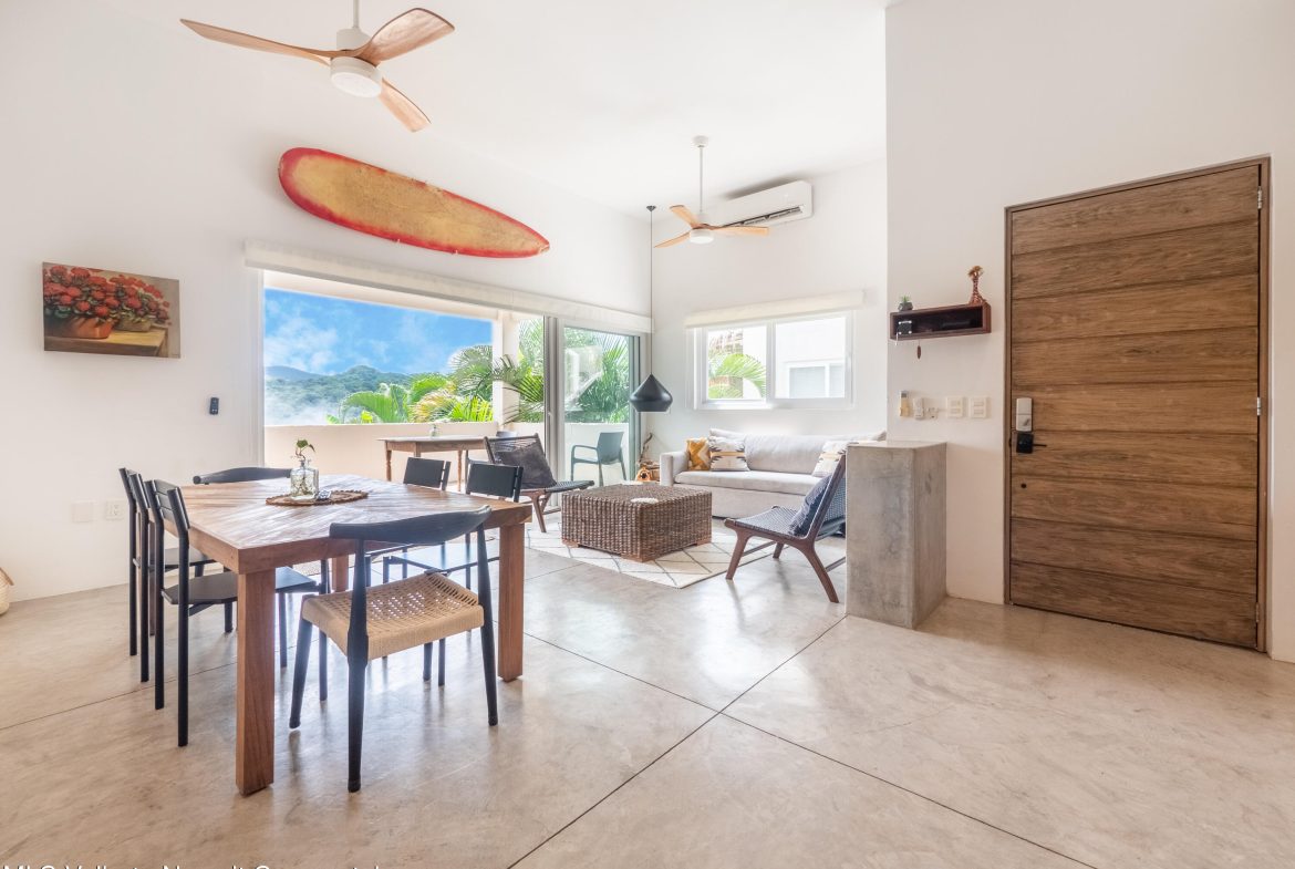 Perched atop Sayulita’s premier Gringo Hill neighborhood,Vista Amanecer offers a luxurious and sophisticated retreat that reflects the merging ofinspiration and architecture. Designed by renowned local architect Oliverde la Cueva. This 2 bedroom, 2.5 bath fully furnished unit embodiesmasterful design and modern luxury featuring spacious, open floor plan,polished concrete flooring, 11.5 ft. ceilings, and high-end finishes. Vista Amanecer offers spacious, sweeping views of the lush, tropicalmountains as the kitchen and living space flow seamlessly into an outdoor dining and lounge area.