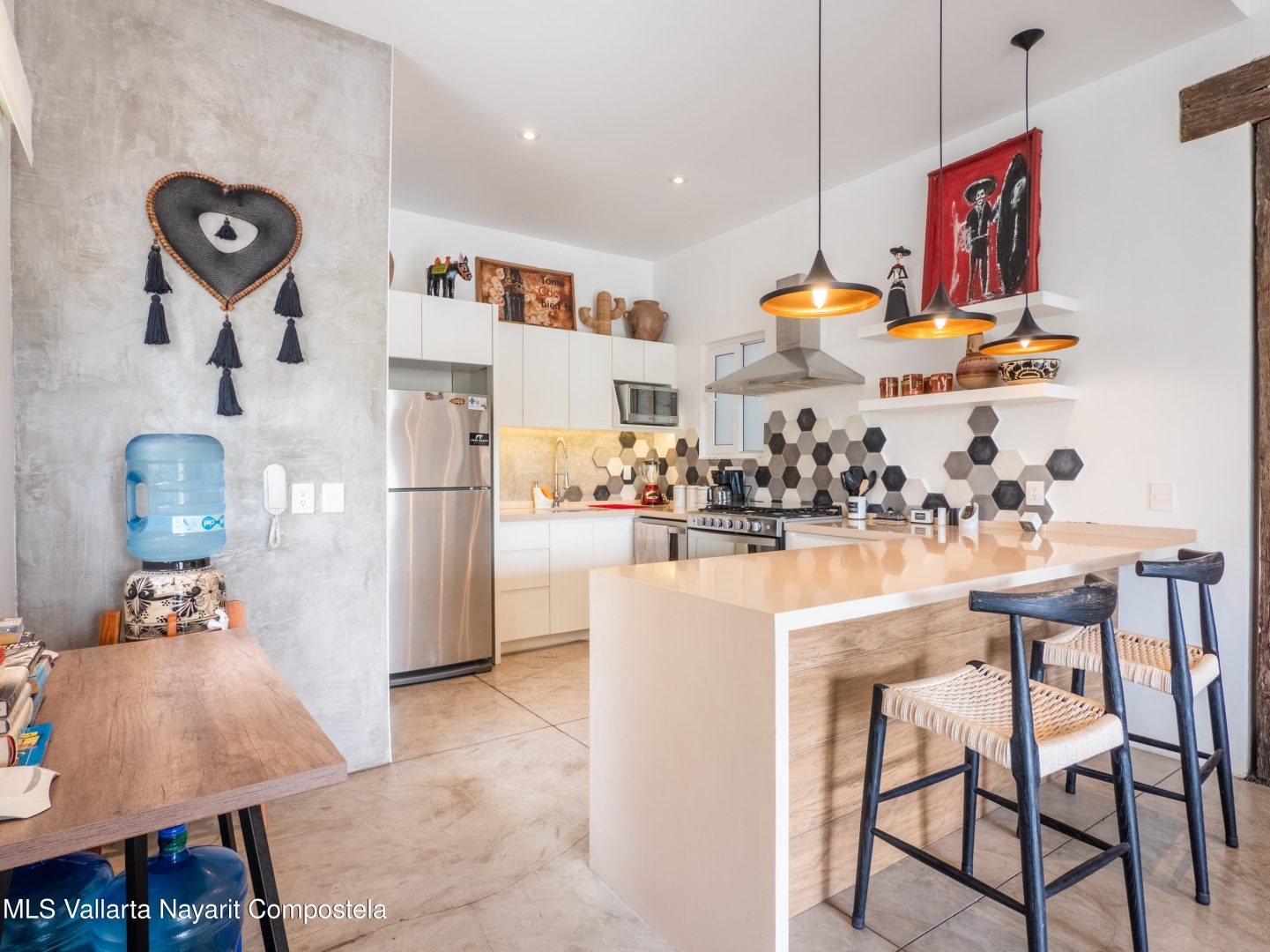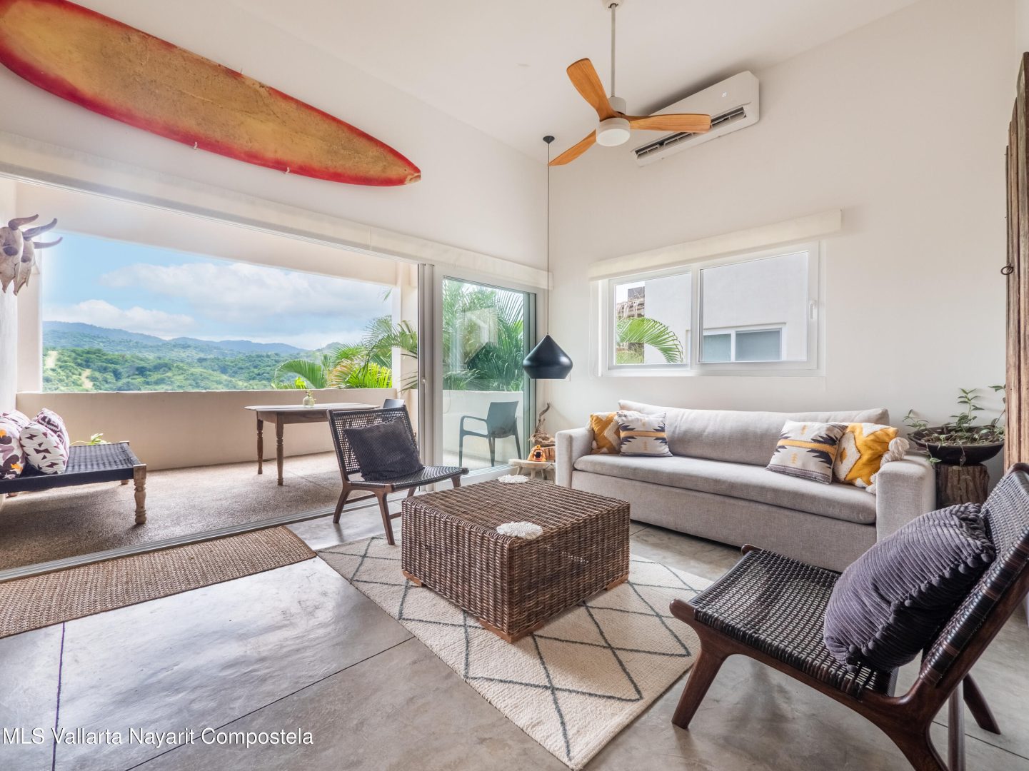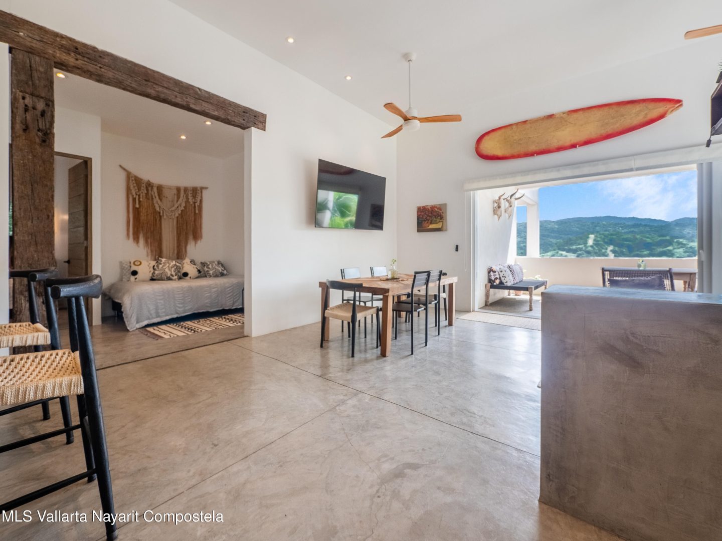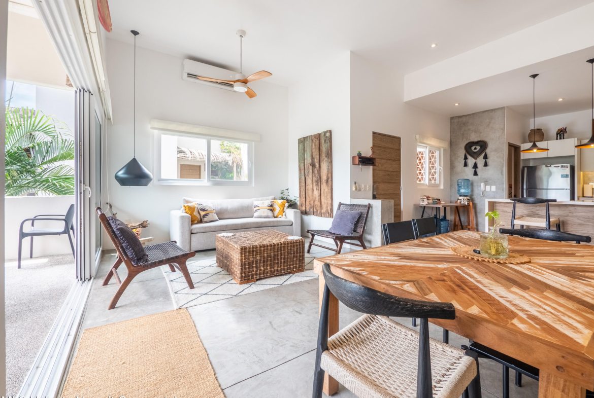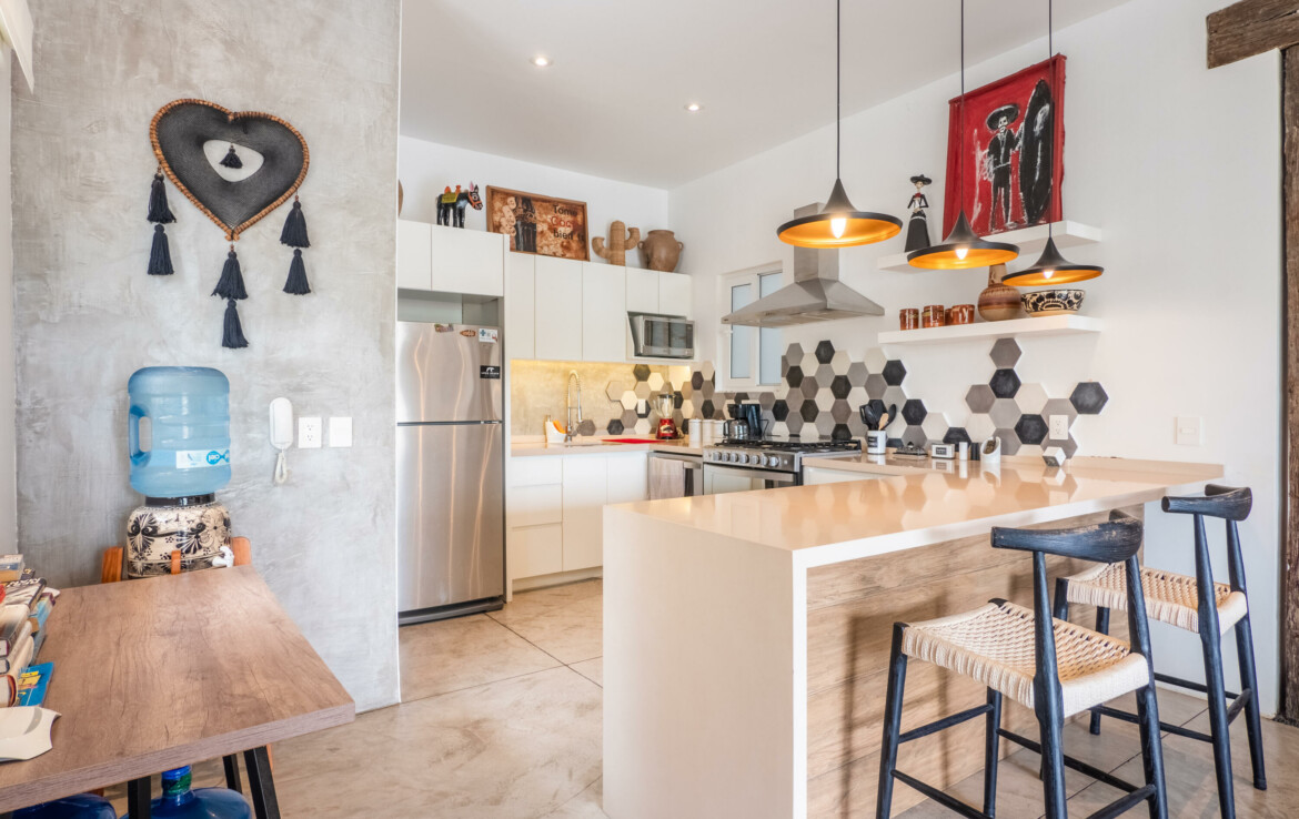 Perched atop Sayulita’s premier Gringo Hill neighborhood,Vista Amanecer offers a luxurious and sophisticated retreat that reflects the merging ofinspiration and architecture. Designed by renowned local architect Oliverde la Cueva. This 2 bedroom, 2.5 bath fully furnished unit embodiesmasterful design and modern luxury featuring spacious, open floor plan,polished concrete flooring, 11.5 ft. ceilings, and high-end finishes. Vista Amanecer offers spacious, sweeping views of the lush, tropicalmountains as the kitchen and living space flow seamlessly into an outdoor dining and lounge area.