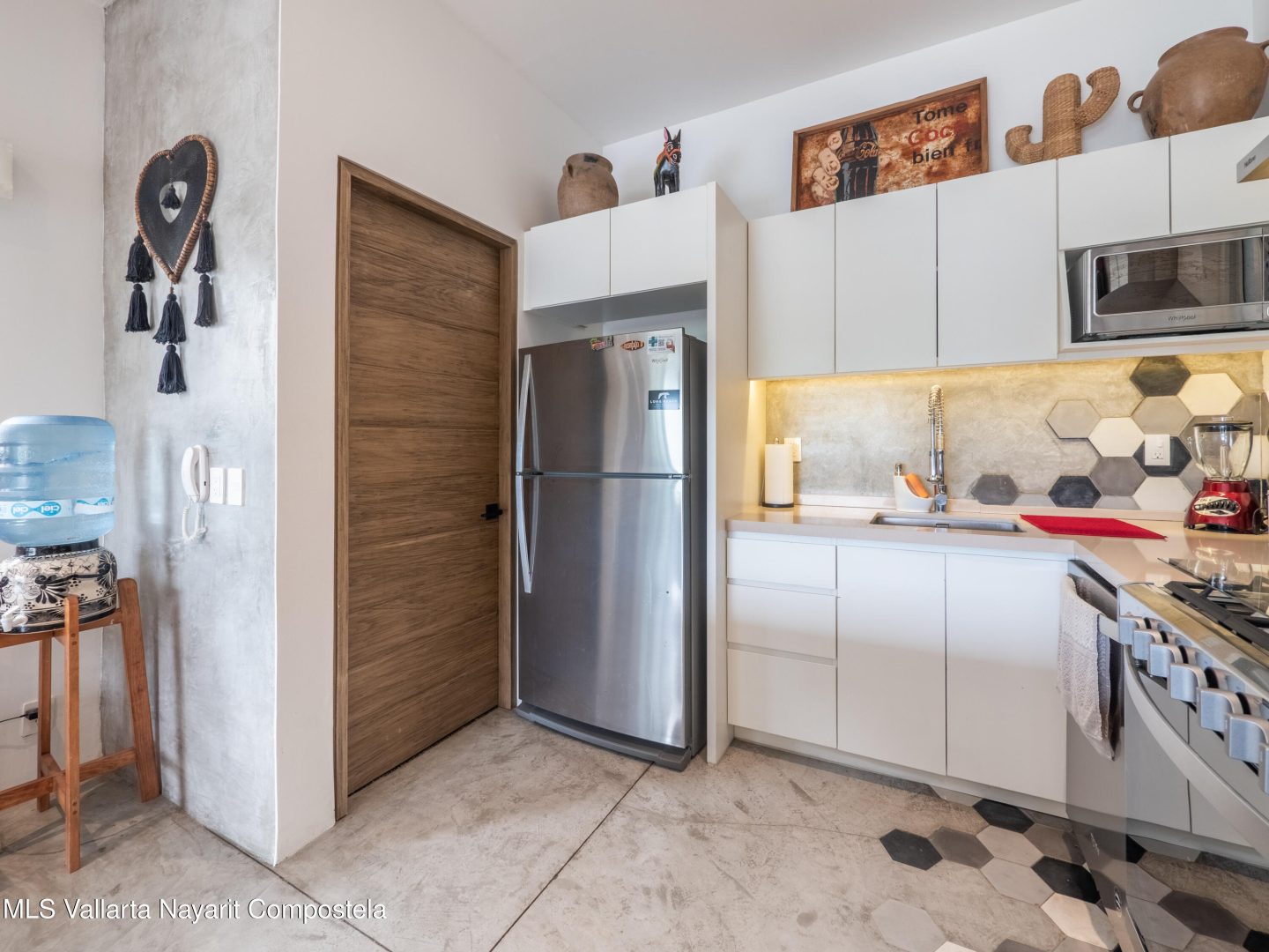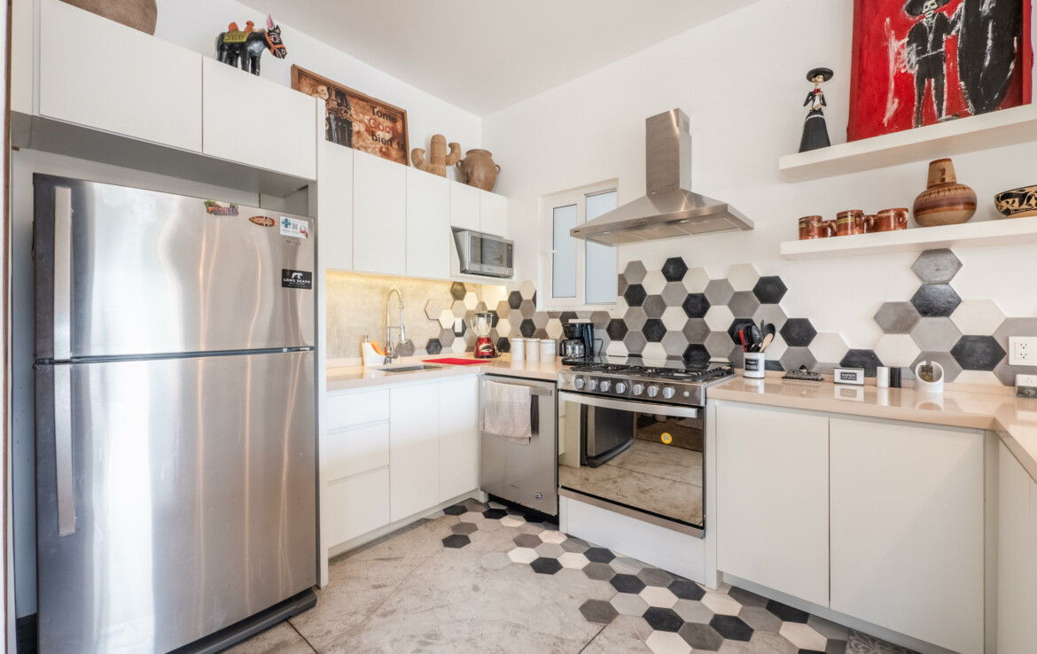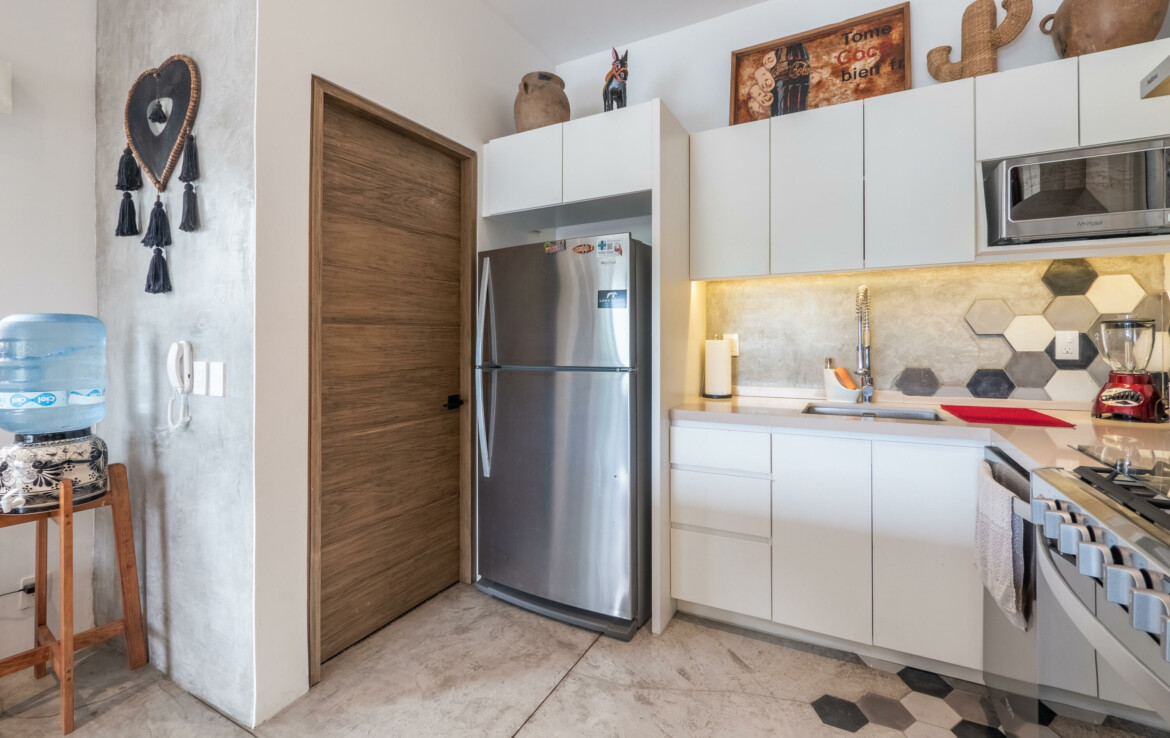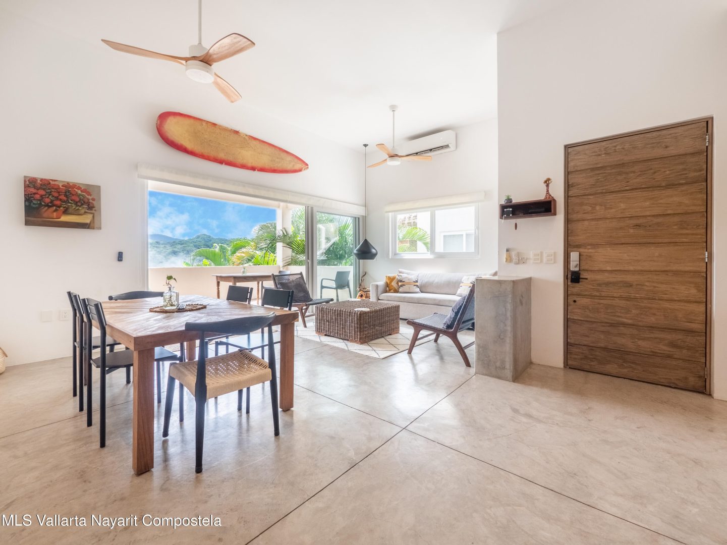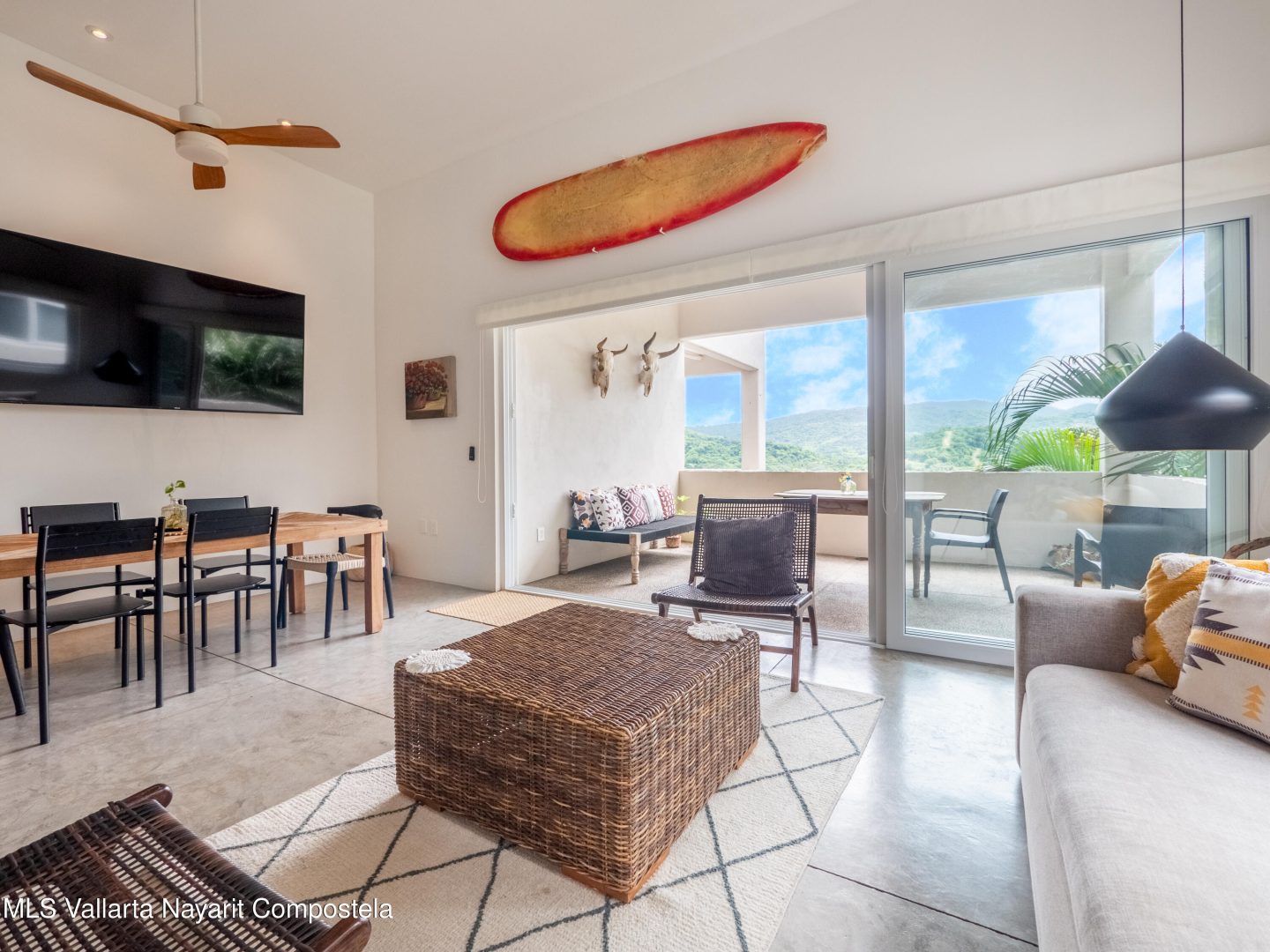Perched atop Sayulita’s premier Gringo Hill neighborhood,Vista Amanecer offers a luxurious and sophisticated retreat that reflects the merging ofinspiration and architecture. Designed by renowned local architect Oliverde la Cueva. This 2 bedroom, 2.5 bath fully furnished unit embodiesmasterful design and modern luxury featuring spacious, open floor plan,polished concrete flooring, 11.5 ft. ceilings, and high-end finishes. Vista Amanecer offers spacious, sweeping views of the lush, tropicalmountains as the kitchen and living space flow seamlessly into an outdoor dining and lounge area.