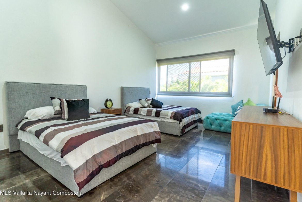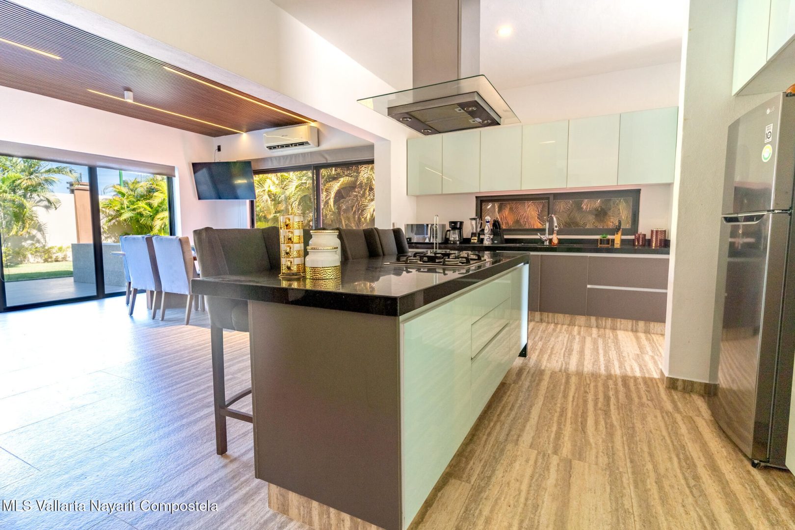 Residencia ubicada en el exclusivo fraccionamiento Vista Lagos, dentro de El Tigre, Nuevo Nayarit.Con un diseno moderno y espacios amplios, esta propiedad ha sido creada para ofrecer un estilo de vida sofisticado y relajado, rodeado de naturaleza y seguridad.Caracteristicas principales:4 Recamaras / 4 Banos / Sala en planta baja / comedor con vista al jardin / cocina integral / terraza para grill / jacuzzi / cochera para 4 autos / paneles solares.Ubicada en una de las zonas mas exclusivas de Nuevo Nayarit, esta residencia ofrece acceso controlado, seguridad 24/7 y cercania a campos de golf, playas, centros comerciales y servicios de primer nivel.