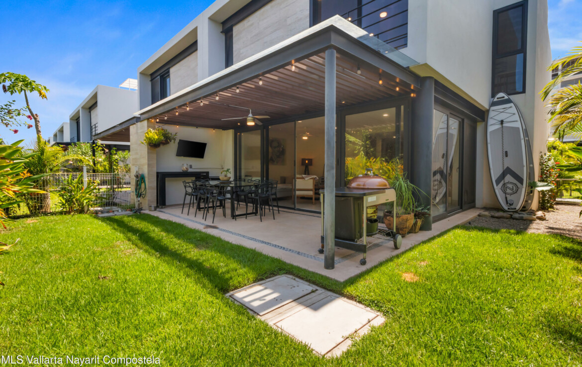 One in a kind!Only a short block separates you from the beach. Enjoy easy access to the sun and surf right at your doorstep!3 bedroom 2.5 bath turn-key house, inside of a gated community just one block away from one of the most beautiful beaches in the bay! Flamingos-Nuevo Vallarta2 levels of comfort. A warm welcome area with an open kitchen-living area opens to a backyard-covered patio where you can enjoy BBQs and family reunions and create the best memories in your family. The property faces the back to the protected area of el Quelele, Where you can enjoy the exotic birds singing in the mornings and the amazing green views of the mountains from the roof terrace.
