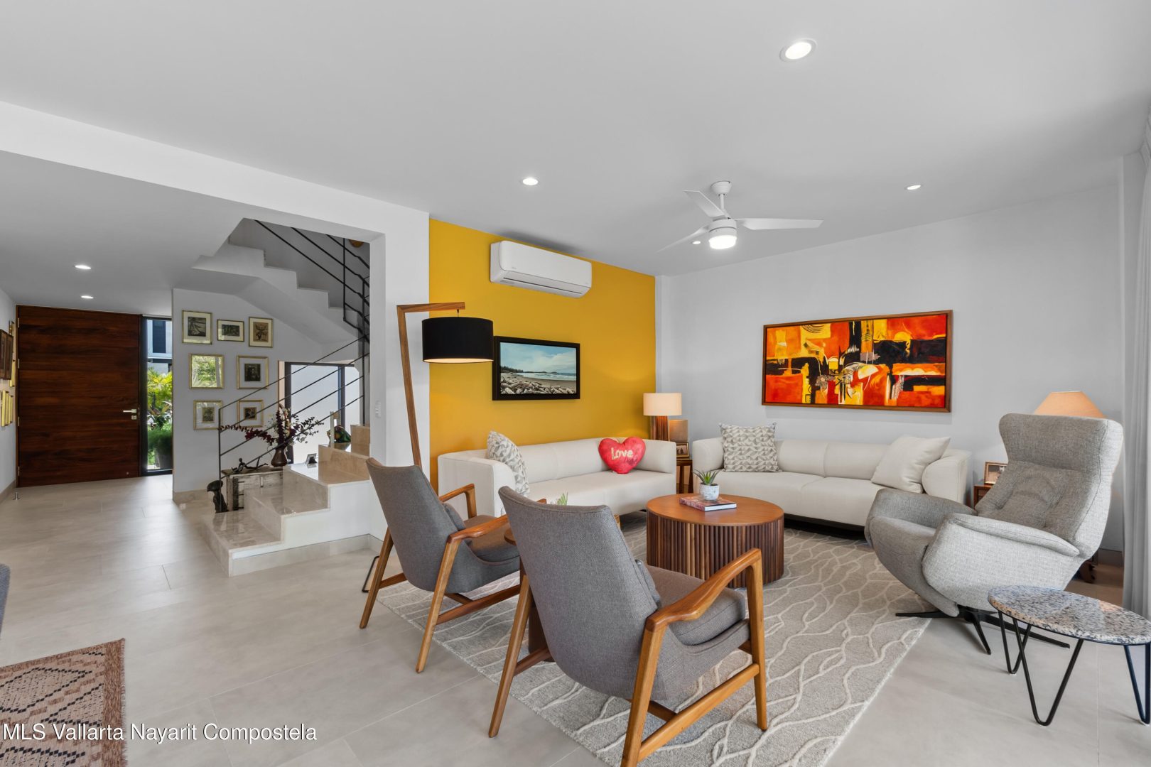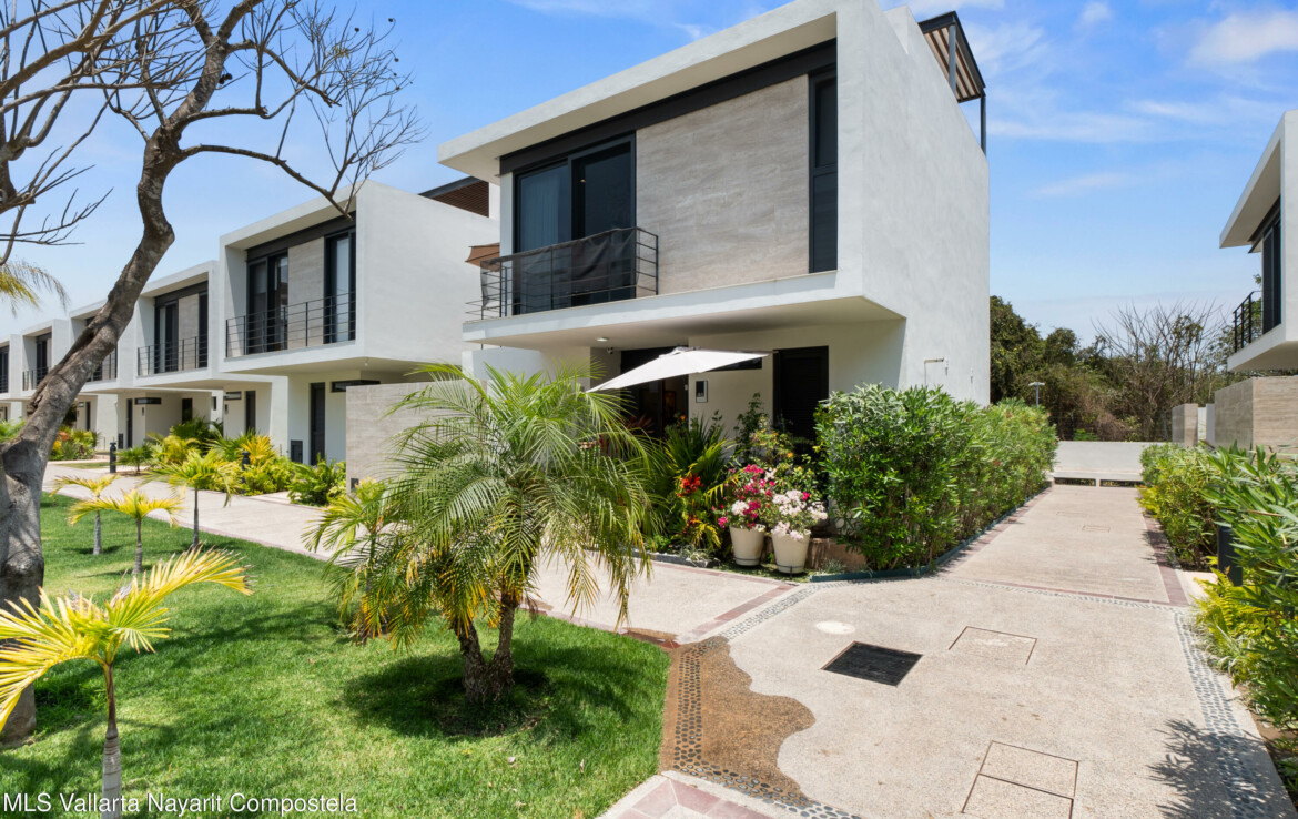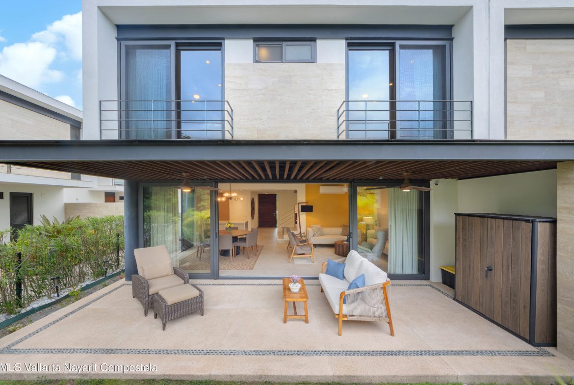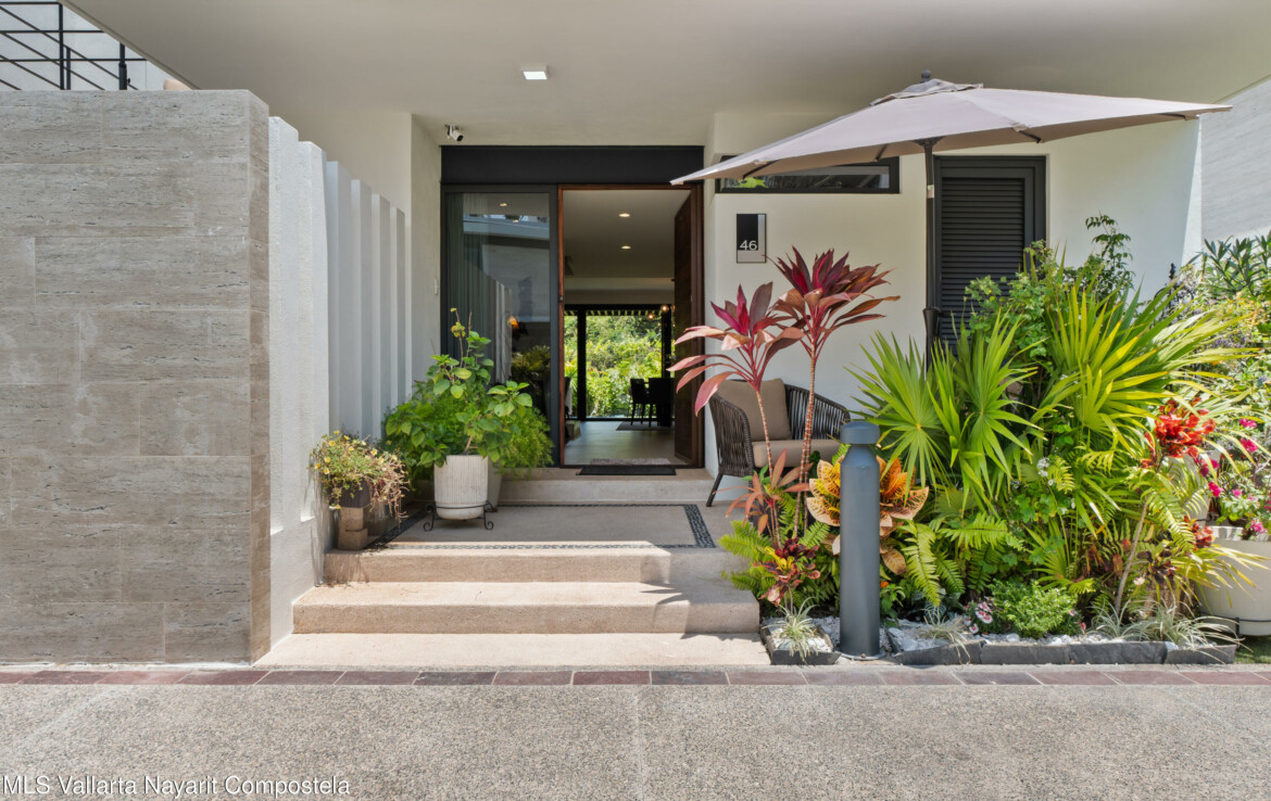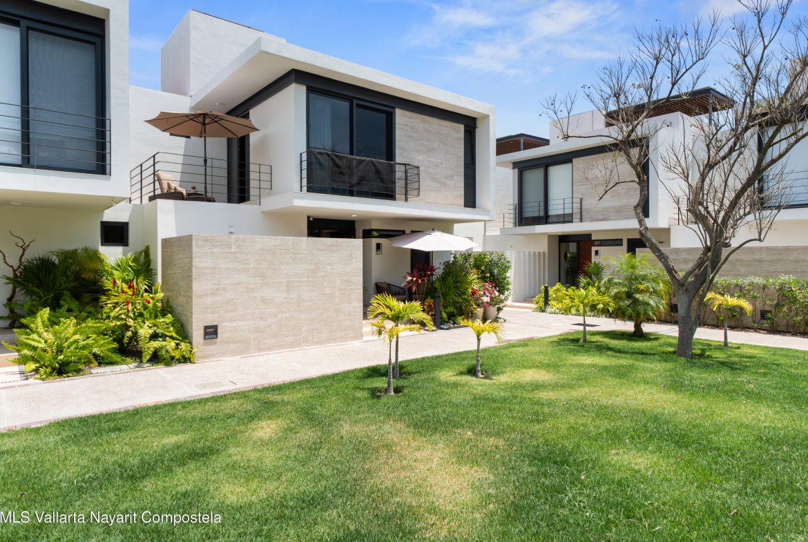 Bienvenido a Vista Natura 46!Vista Natura es un desarrollo privado de 2 hectareas con 56 casas, ubicado frente a la playa, en la zona de Flamingos de Nuevo Vallarta. Las areas comunes incluyen un salon social, un centro de negocios, una gran piscina, jacuzzi, gimnasio, terraza para yoga y sala de juegos. Este desarrollo cuenta con seguridad las 24 horas.Esta hermosa casa esquinera de 3 recamaras (mas un espacio flexible en la planta baja) y 4 banos cuenta con una cocina bien equipada, un encantador patio trasero, una amplia despensa/almacenamiento, sala, sala de estar/sala de TV en el segundo piso, 3 recamaras con bano privado y una amplia terraza en la azotea con plomeria y conexiones para un jacuzzi. Esta casa ha sido remodelada significativamen