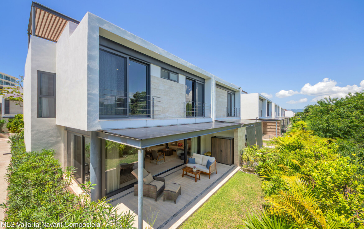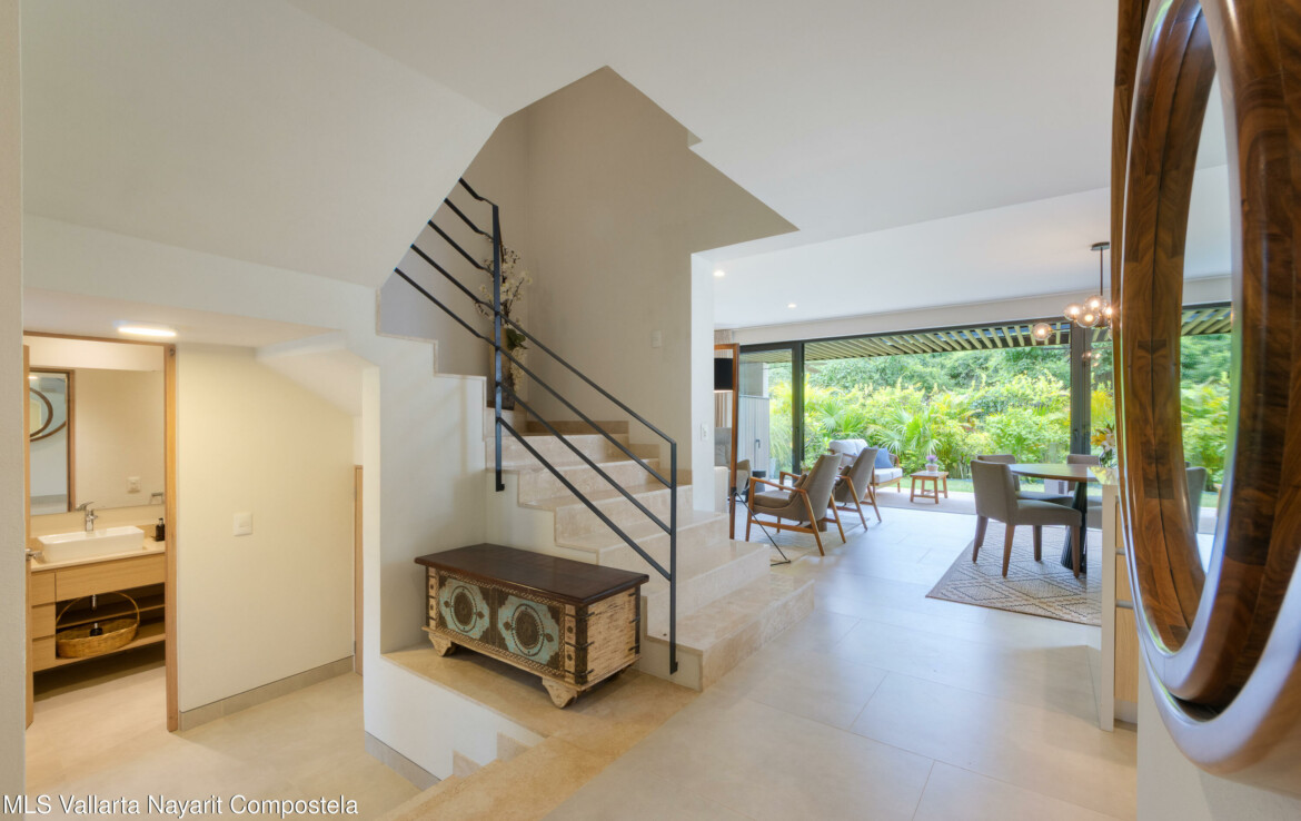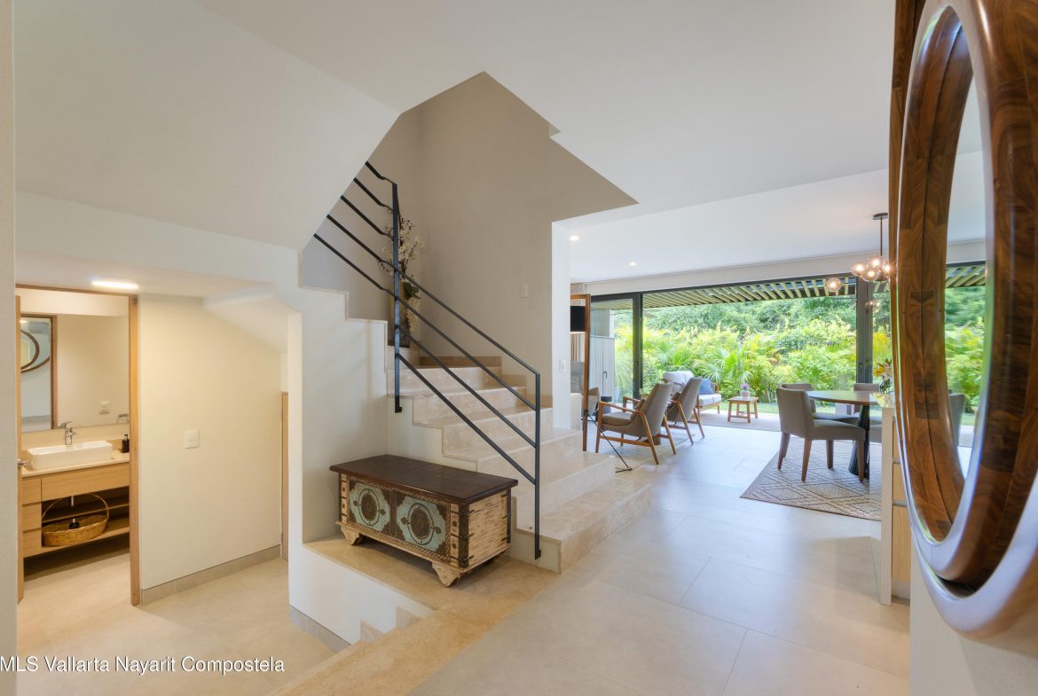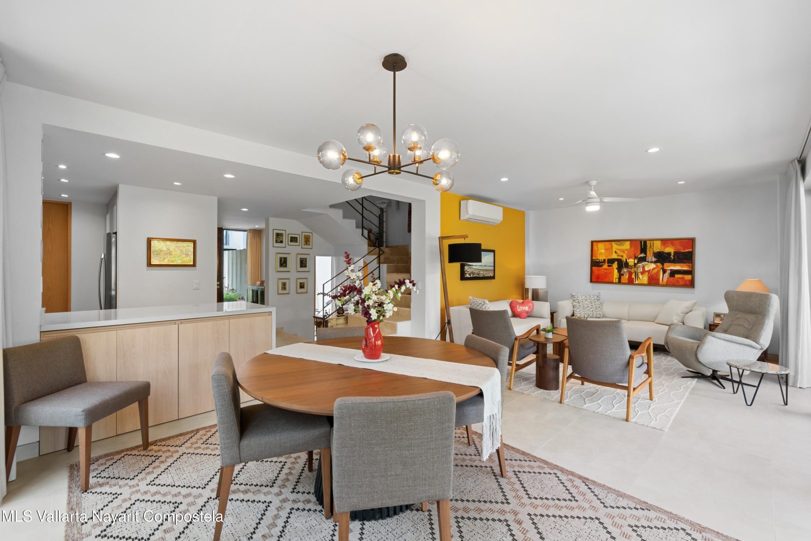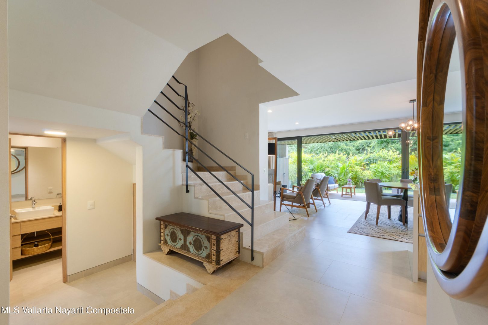 Bienvenido a Vista Natura 46!Vista Natura es un desarrollo privado de 2 hectareas con 56 casas, ubicado frente a la playa, en la zona de Flamingos de Nuevo Vallarta. Las areas comunes incluyen un salon social, un centro de negocios, una gran piscina, jacuzzi, gimnasio, terraza para yoga y sala de juegos. Este desarrollo cuenta con seguridad las 24 horas.Esta hermosa casa esquinera de 3 recamaras (mas un espacio flexible en la planta baja) y 4 banos cuenta con una cocina bien equipada, un encantador patio trasero, una amplia despensa/almacenamiento, sala, sala de estar/sala de TV en el segundo piso, 3 recamaras con bano privado y una amplia terraza en la azotea con plomeria y conexiones para un jacuzzi. Esta casa ha sido remodelada significativamen