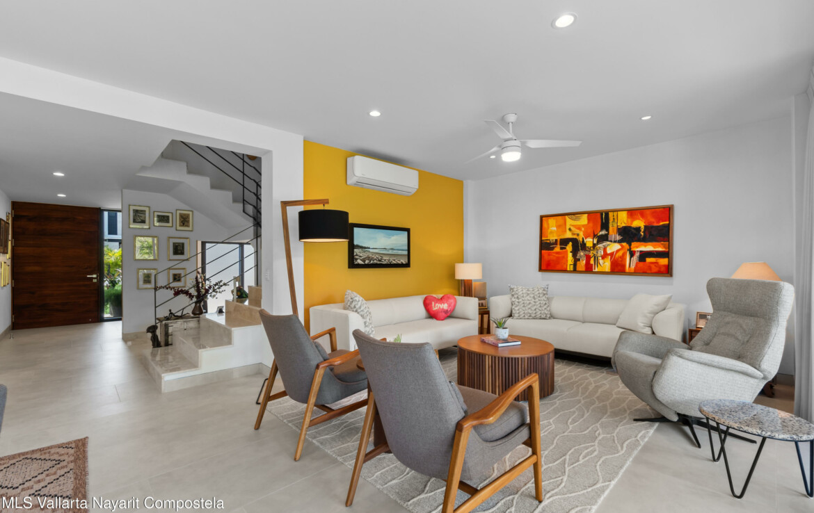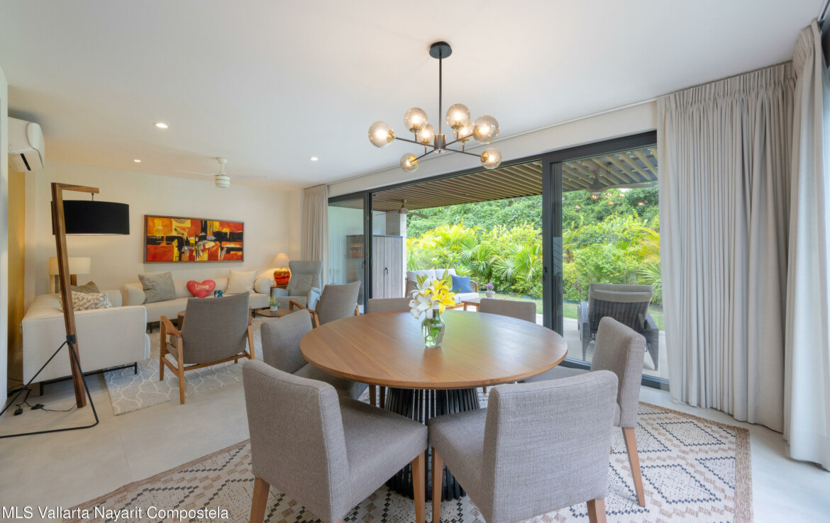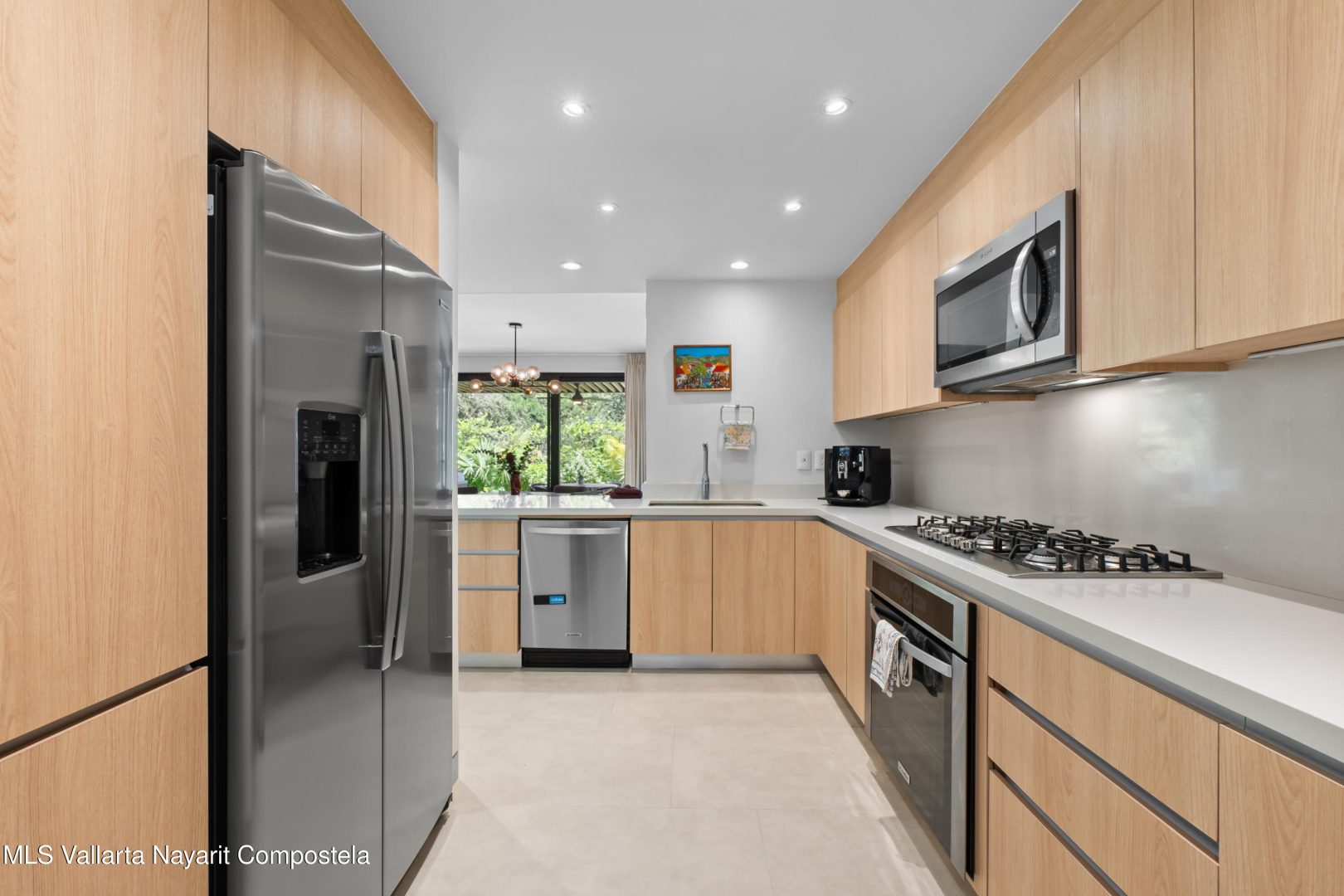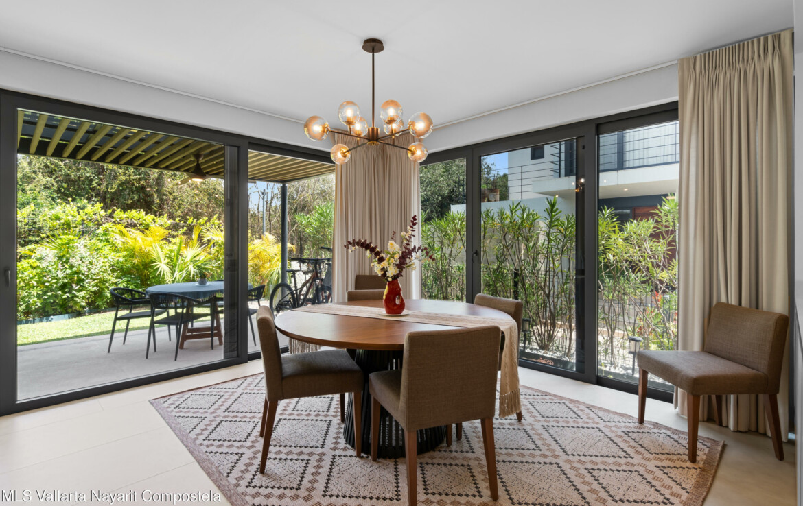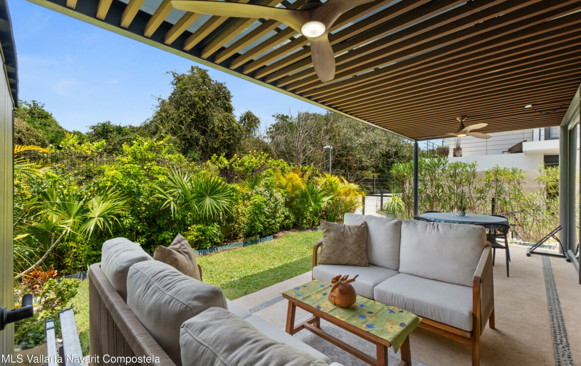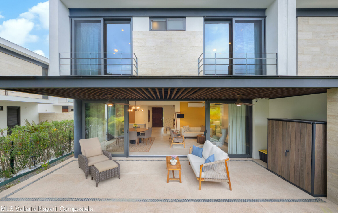 Bienvenido a Vista Natura 46!Vista Natura es un desarrollo privado de 2 hectareas con 56 casas, ubicado frente a la playa, en la zona de Flamingos de Nuevo Vallarta. Las areas comunes incluyen un salon social, un centro de negocios, una gran piscina, jacuzzi, gimnasio, terraza para yoga y sala de juegos. Este desarrollo cuenta con seguridad las 24 horas.Esta hermosa casa esquinera de 3 recamaras (mas un espacio flexible en la planta baja) y 4 banos cuenta con una cocina bien equipada, un encantador patio trasero, una amplia despensa/almacenamiento, sala, sala de estar/sala de TV en el segundo piso, 3 recamaras con bano privado y una amplia terraza en la azotea con plomeria y conexiones para un jacuzzi. Esta casa ha sido remodelada significativamen