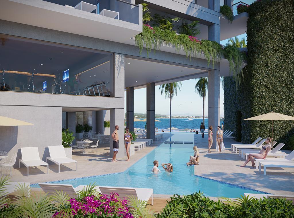 Mountain and partial ocean view 1BR + DEN with bunk beds/2bath , sleep 6, luxury condominium in a beachfront complex offering an array of amenities: beach club, main elevated pool, gym, Spa cabins, Co working center, Kids club, boutique
