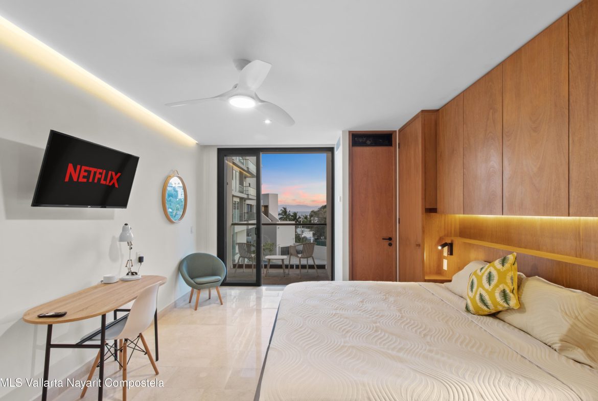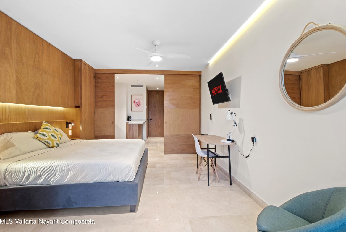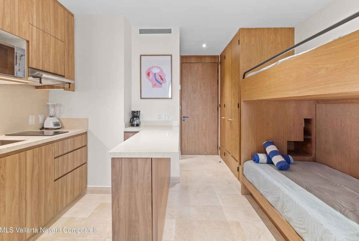 En venta exclusivo estudio en Zantamar, La Cruz de Huanacaxtle. Ofrece cama king, dos literas y dos banos completos, ideal para 4 personas. Cuenta con cocineta equipada, balcon con vista al mar, Wi-Fi y A/C. El desarrollo ofrece gimnasio, dos albercas y acceso directo a la playa. Una excelente oportunidad de inversion para disfrutar, generar ingresos por renta vacacional y asegurar plusvalia en una de las zonas de mayor crecimiento en Bahia de Banderas.Exclusive studio at Zantamar, Features a king bed, two bunk beds and two full bathrooms, ideal for 4 guests. Includes kitchenette, ocean-view balcony, Wi-Fi and A/C. Amenities: gym, two pools and direct beach access. An outstanding investment opportunity to enjoy & earn vacation rental income.
