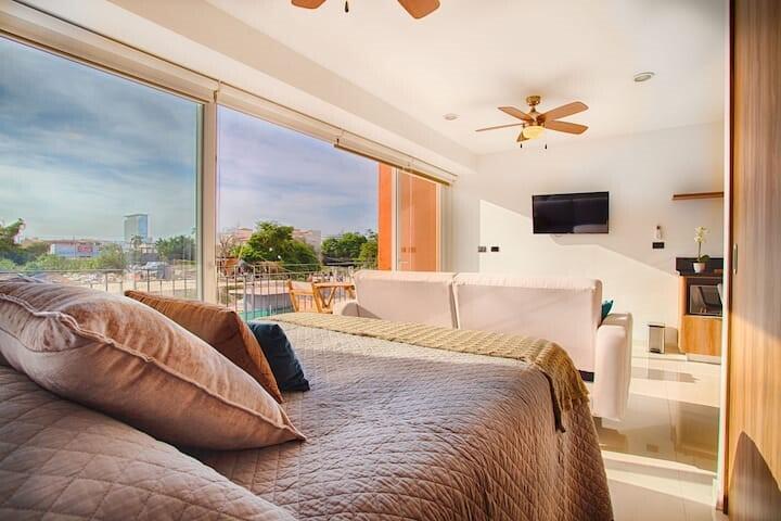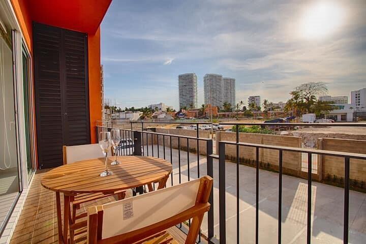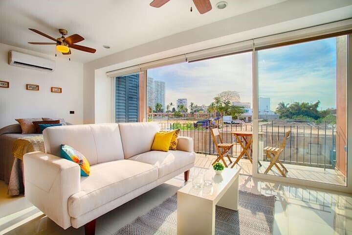 ZOHO Estudio con un bano completo, amueblado, situado en el punto estrategico de Puerto Vallarta, a poca distancia de la playa, centros comerciales, restaurantes, cafeterias, mercados, etc. Muy buenas amenidades, techo, sala-bar, estacionamiento, seguridad 24/7. Unidad con balcon. Estudio ZOHO, with a 1 bathroom, estrategy located in Puerto Vallarta, short distance to the beach, shopping centers, restaurants, coffy shops, markets, etc. Amenities: roof top, parking, security 24hrs. Unit with balcony.